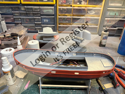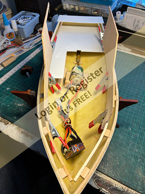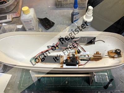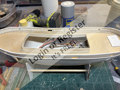 Thatโs whereโs sheโs at now, Iโm going to get the ESC and receiver mounted using Velcro, and once Iโm statisfied that I can access them via the hatch Iโll start on the deck.