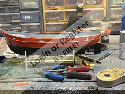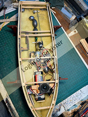 The mast on this is 1.486m tall, - sail is -luff -11.295, foot 609mm, so quite large for a small boat. The full sized boat is a lot of fun to sail, so this model will be interesting to sail. Unfortunately, without the human input required, and being a performance boat, it may assume the attributes of a submarine in a stiff breeze, - time and testing will tell.