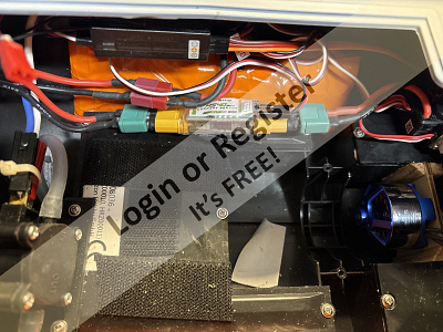So, I had to make a mount for my preferred motor, the Zippkits 650 brushless outrunner, that’s coupled to the shaft with a good solid coupler. Esc is a HobbyWing 16BL30 30 amp unit. I had to do some modifications to mount my preferred Amazon sourced pump, which included drilling out the molded in water pickup and epoxying in a brass pickup, and changing the mounting location of the pump. Pump is powered by a 10 amp brushed aircraft esc-the original that came with the boat works well, but is set up for 3 cells, and doesn’t give me enough voltage at the pump. Originally I was going to use a FrSky 7 channel receiver, but I wanted to try my hand at telemetry. So I used a FrSky X8R so I could run the FrSky FAS40 module, which gives my real Tim battery voltage and current draw. I also added ballast to bring her up to 12 pounds, as the stock weight of 9.5 or so is seriously under ballasted.