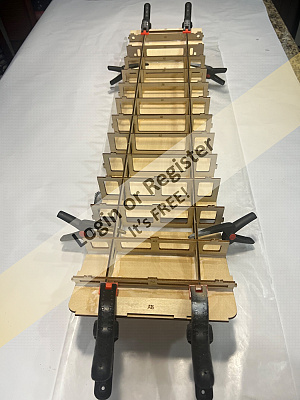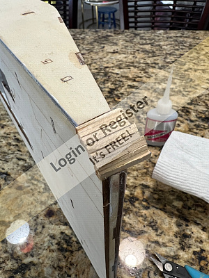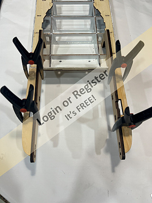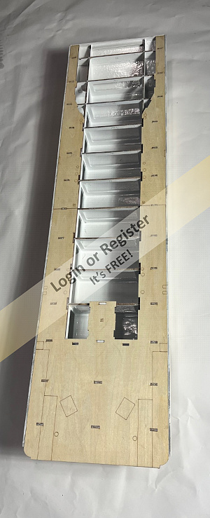 The cockpit floor was cut, and will be slotted the same as the braces, then the c/board case will be built.