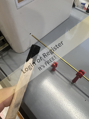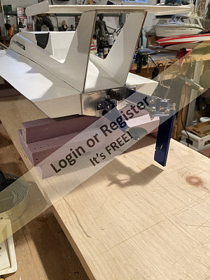 First thing after cutting out the hull, deck and interior liner is to clean up and trim, then youโre supposed to build up the rudder from 2 abs halves and a metal shaft. I had a commercially made rudder that was the right shape and size, so I chose that and a 3mm ID tube. Now, the builder is supposed to make sure the liner fits, then tape it in place so one can drill the rudder tube hole thru the hull and up into the aft part of the liner. I thought Iโd be able to just hold it in place. And, of course, it slipped leaving me with an elongated hole too far forward. Looking at the plans, the tube comes thru the bottom of the hull and is glued ther and at the liner. No reinforcements on the hull bottom. So, me being me, I found a nice piece of hard balsa, drilled to fit, and then slid that over the tube, and used black ca on the bottom of the hull and used epoxy to glue the tube and block inside. I made the offending hole in the liner a little bigger, and once it was glued in i made up a plate to go over the tube, the glue the plate to the tube and topside of the liner. Before I could accomplish that, I had to mod the liner to accept my choice of brushless outrunner. Plus I had to cut the slot for the stuffing box. Once I had all that done, I tacked the tube in place with ca, made sure it was lined up, the used tape on the bottoms of the hull to keep excess epoxy from running out and then glued it home.skeg was installed at this time. Then I installed the modified liner. I made up my motor mount and installed it and the motor. I tacked the mount in place with the motor installed to make darn sure the motor, shaft and coupler were a slip fit with no binding, then I bonded the mount to the hull and liner. After that I installed the deck, and the spray rails. Youโre supposed to cut the strip from tha plastic sheet, but I cheated and used some strip styrene I already had.