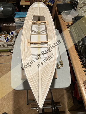 She measures out to 11' 3" and her power plant is to be two 24 volt Buehler motors.