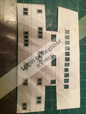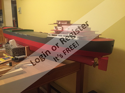 The entire main deck is intended to be removable with a drainage irrigation system of plastic corner moulding (from a building supplier) along top of hull and flush at poop and back deck structure. The deck is made of 1/4" plywood skeletal structure incorporating midship deckhouse. Hull glassed with lightest cloth available after 2 coats 2-epoxy sealer and paint primer followed by final coat except top (above waterline) grey will be applied once I have finished doing any necessary adjustments. There have been a lot of them since I realized many inaccuracies in dims etc. I wasn't happy with.