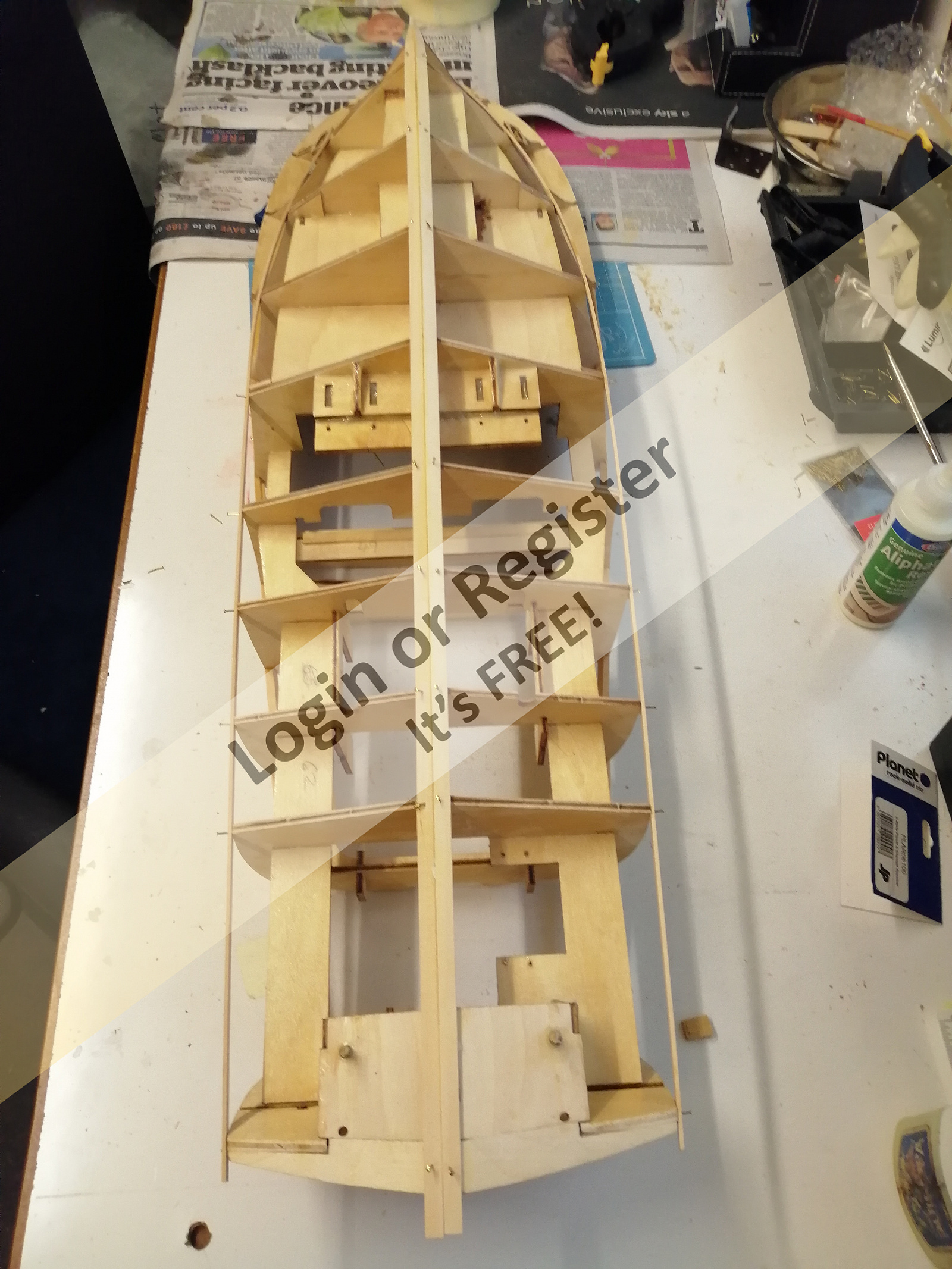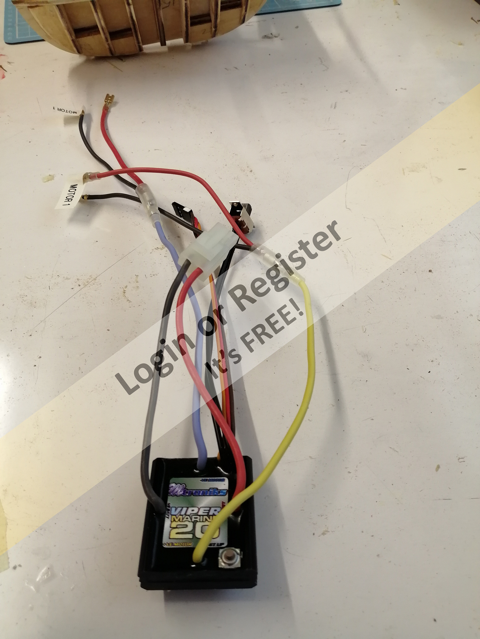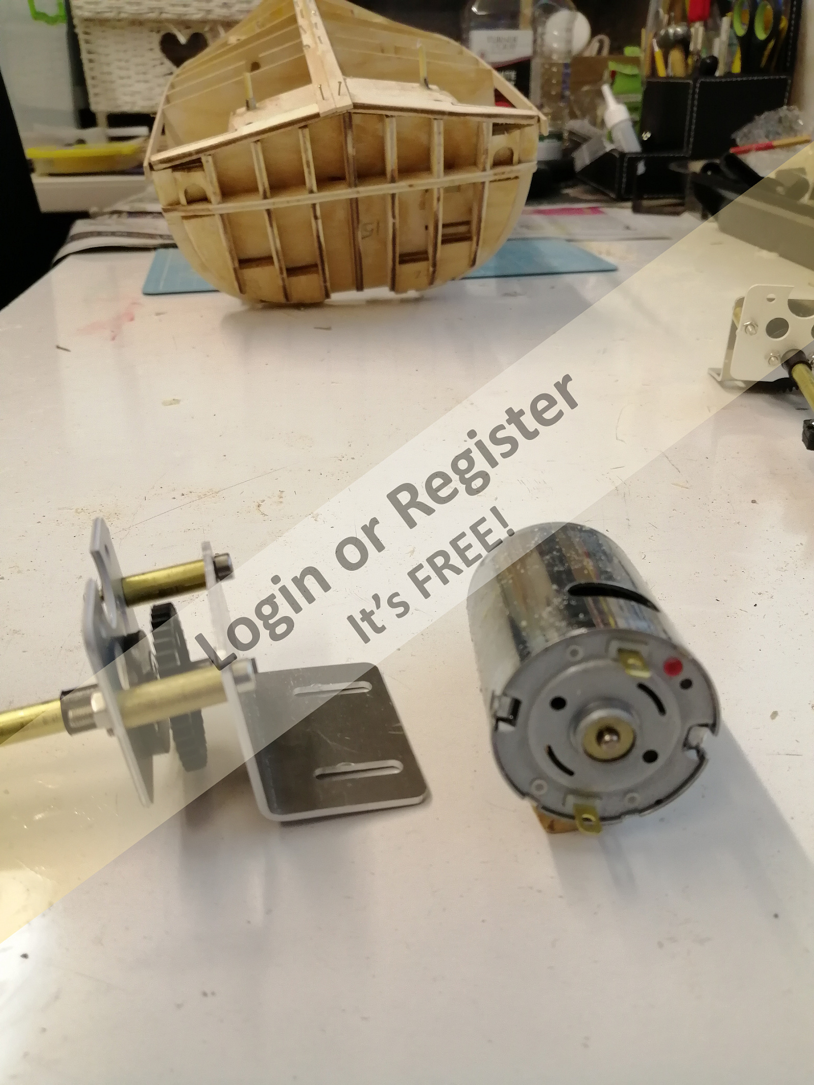 The motors supplied unfortunately don't have any markings whatsoever on the casings so I've no idea of the ratings. I've taken photos of the motors from different angles and also the assembled gearbox and the supplied ESC. Don't know if anyone can recognise these motors? I've also taken a photo of my hull after applying the 1st two planks. I've put cocktail sticks down the rudder tubes to stop them from getting blocked. I'm seriously considering laying both the spruce and mahogany planking up to the waterline and then fitting the motors and rudders and linkages whilst there is still a bit more access to these areas! I struggled to do a temporary fix of these earlier and once the sides are in place I think it will be almost impossible to get my hands in to do the task. Hope it works!!