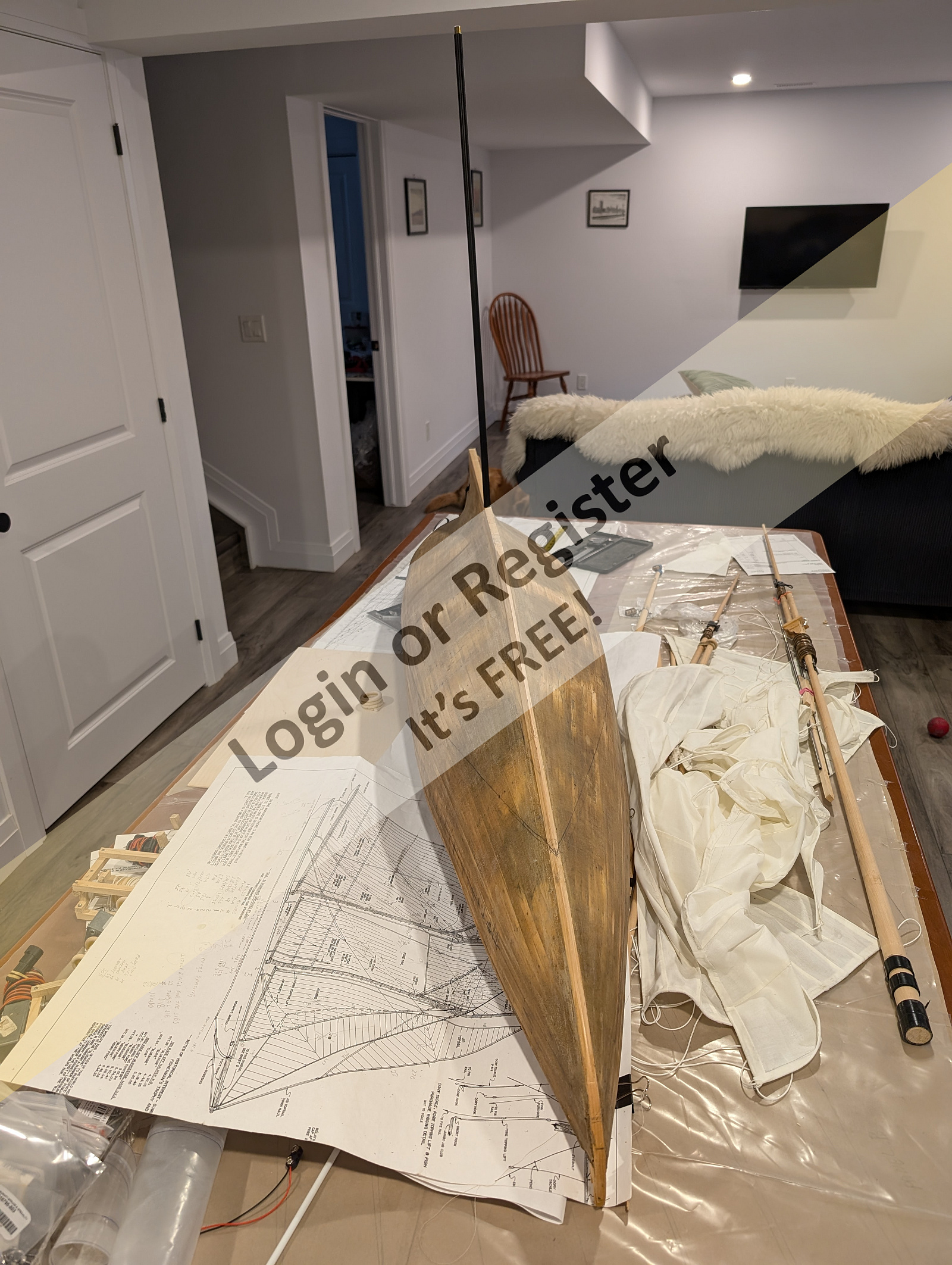 When scaling down from a prototype as we know, hulls and sails do not change in proportion to each other. I start from the size of the finished model, i.e. will it fit in my car and also have a place in the house. So working out a suitable hull size comes first. Dividing the model length into the prototype length gives a scale. The cube of the scale gives a 'scale displacement', in some scales just not practical! All my models have to earn their living at the lakeside. It is fortunate that to make a model sail, the invisible part under the water can be doctored in many ways. The models by Glynn Guest have relatively crude hulls and what used to be called 'stand off scale' appearance. I have built several and they look good on the water. I also enjoyed the construction. So we have to decide where your interest lies? Doing exact calculations for hull displacement is conditioned by sailing in water (and waves) that have obstinately remained at full size. Hull displacement calculations could have a 10% error but it would not be noticeable when on the water. Bearing in mind that all the mentioned calculations have an end in practical sailing. If only constructing a display model the numbers are irrelevant! It reminds me of the radio control of the 1950s where the boat was the least important aspect of the model! Just my two pennorth! Roy ▲