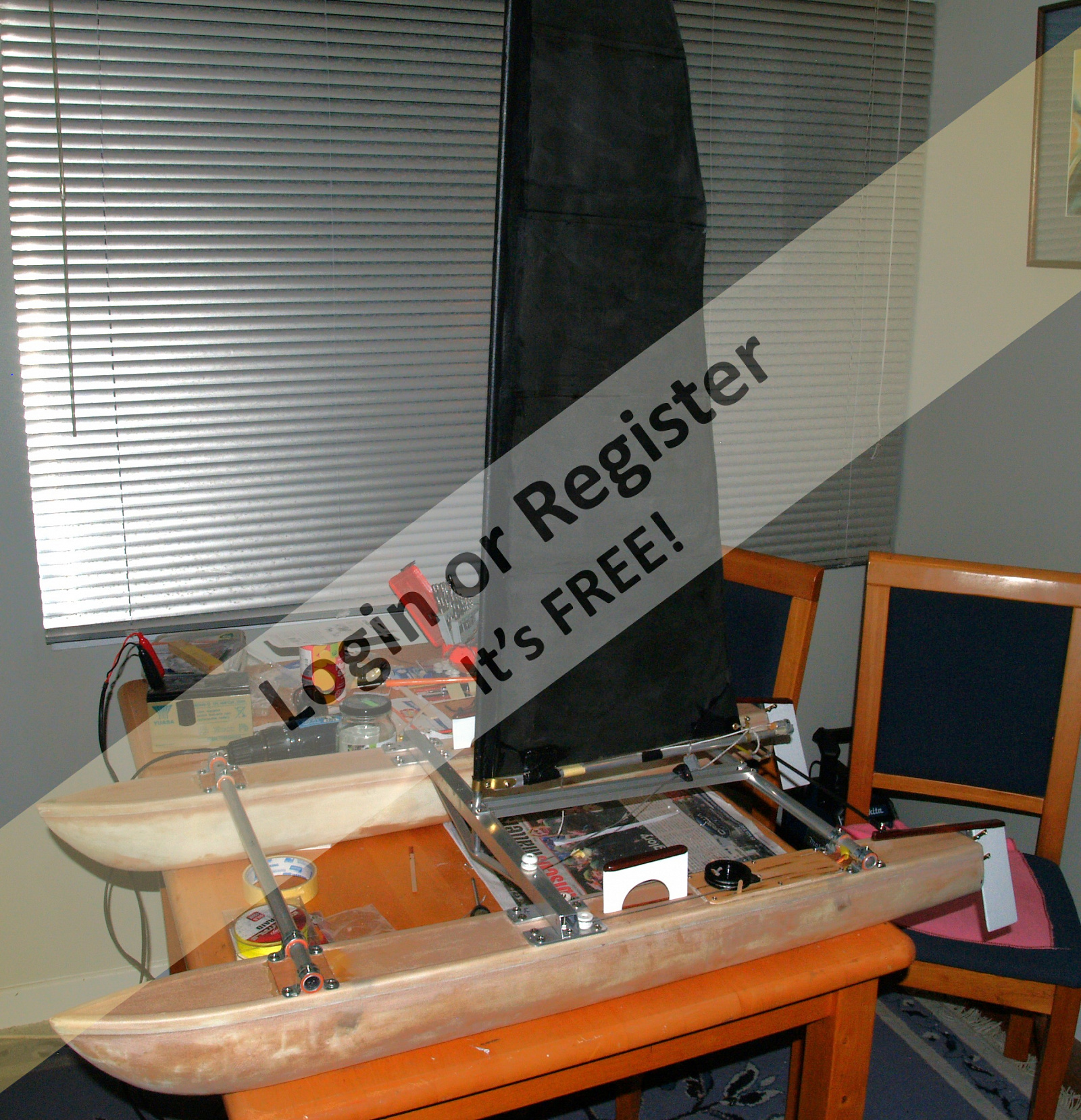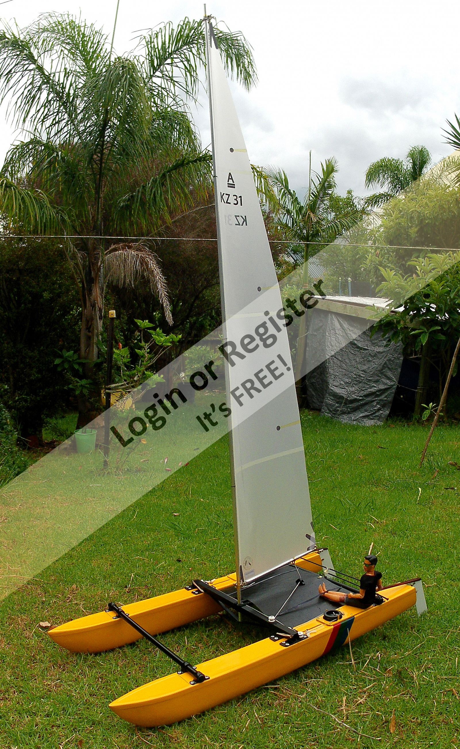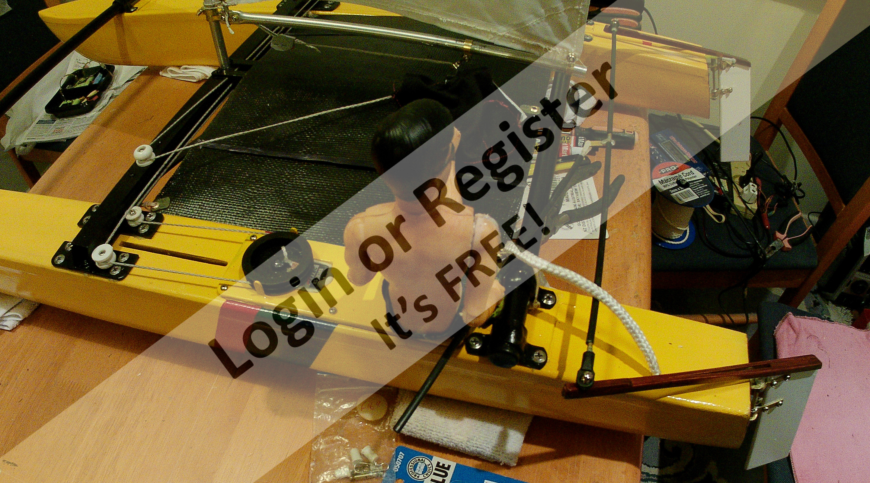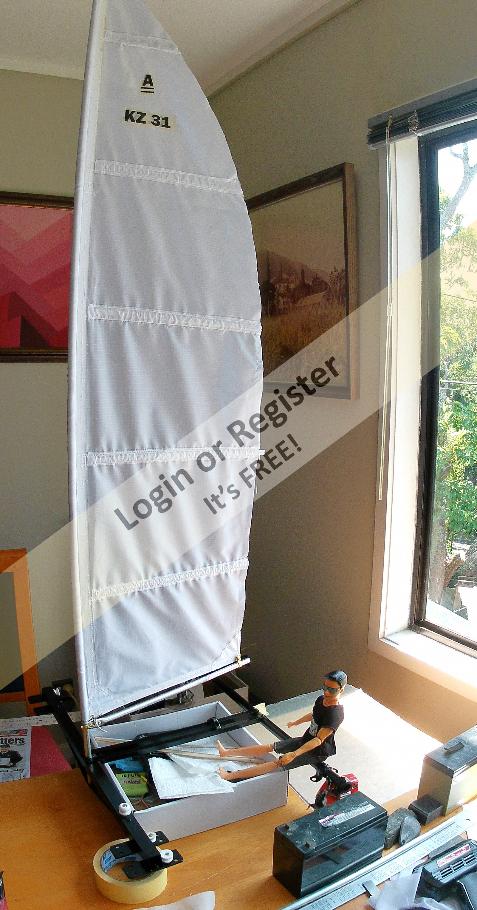 Beautiful work and the videos where you show it sailing, have motivated me to try to build one of these catamarans. A few questions: 1 โ when you say that you started working on a 1 meter catamaran; do you mean the sails of an IOM? 2 โ when you talk about an 18-foot "Hustler MK2" "Class A" catamaran designed by Ron Given, do you mean the size of each hull of the catamaran? 3 โ That's about 5.59 meters of hull... did you build it in any particular scale or based on the size of the sail? 4 โ The dummy you used (very accurate, by the way), what scale is it? Thank you very much. I will follow your work and I hope to overcome some health problems (typical of Spanish winters) to be able to start building something like this. ▲