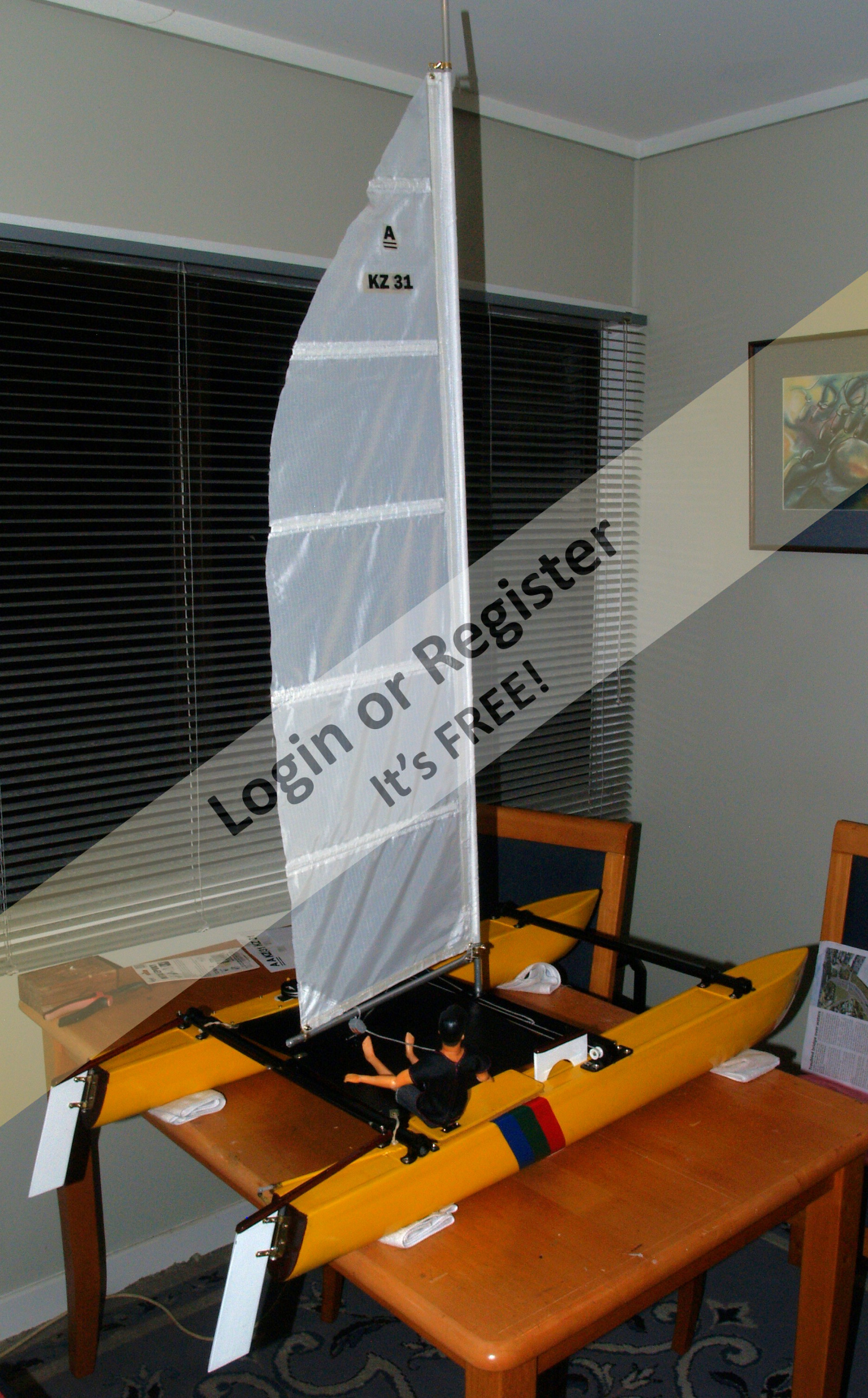 1. 1m is the hull length of the model (sail is- luff -1150 and foot-330) 2. An 'A' class catamaran is 18ft ( 5.48m) in length and is an international class. (latest ones are on foils) 3. No particular scale, just a convenient size to fit in my car, plus the 1:6 scale figures (300mm) are close to the right size for scale. Width of boat is 500mm. 4. The 1:6 figures are available on Ali Express, and you can buy suitable clothing separately to suit I'll be interested to see what you build JB ▲