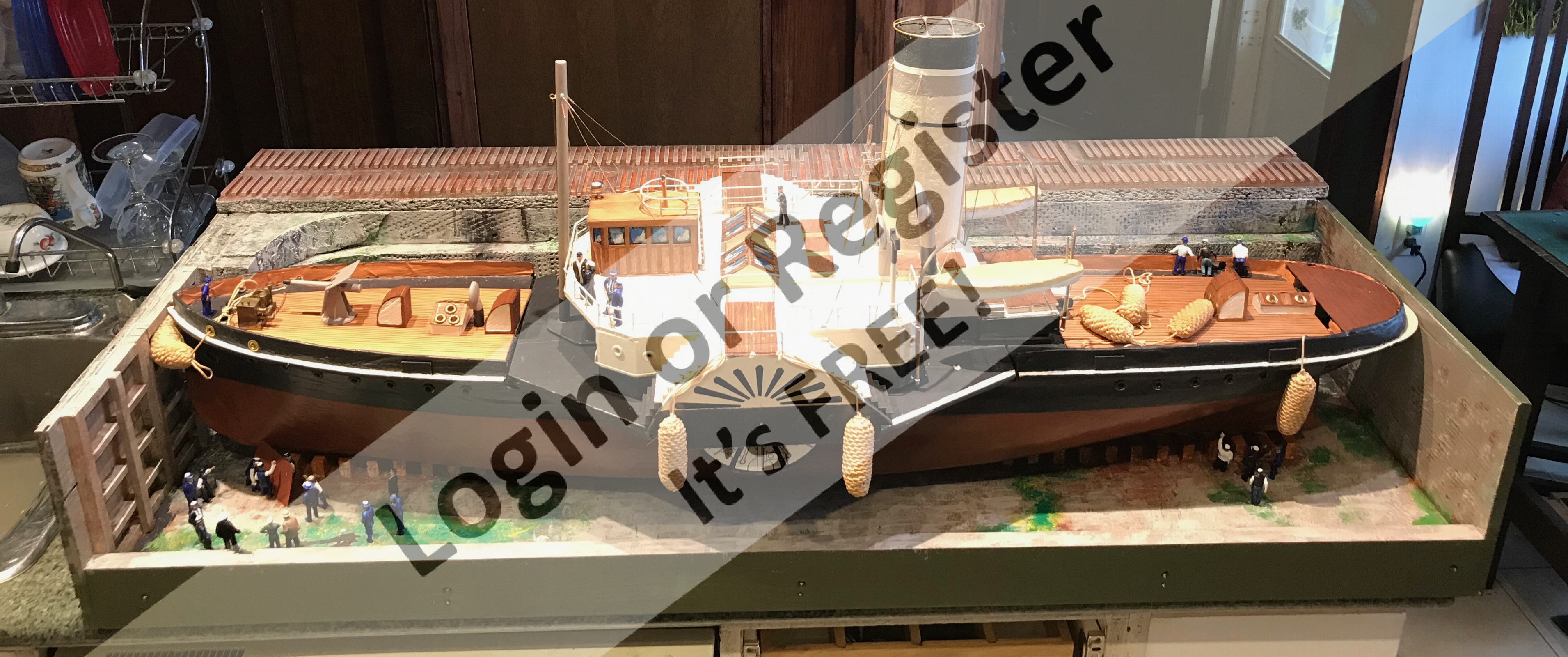 I am ignorant of paddle wheel ship models and assumed it was a high RPM. In your opinion, is the number of revolutions per minute adequate or too fast? Can you maintain a realistic speed of your model? Do you have any navigation videos you can show us? I would love to see it in action. ▲