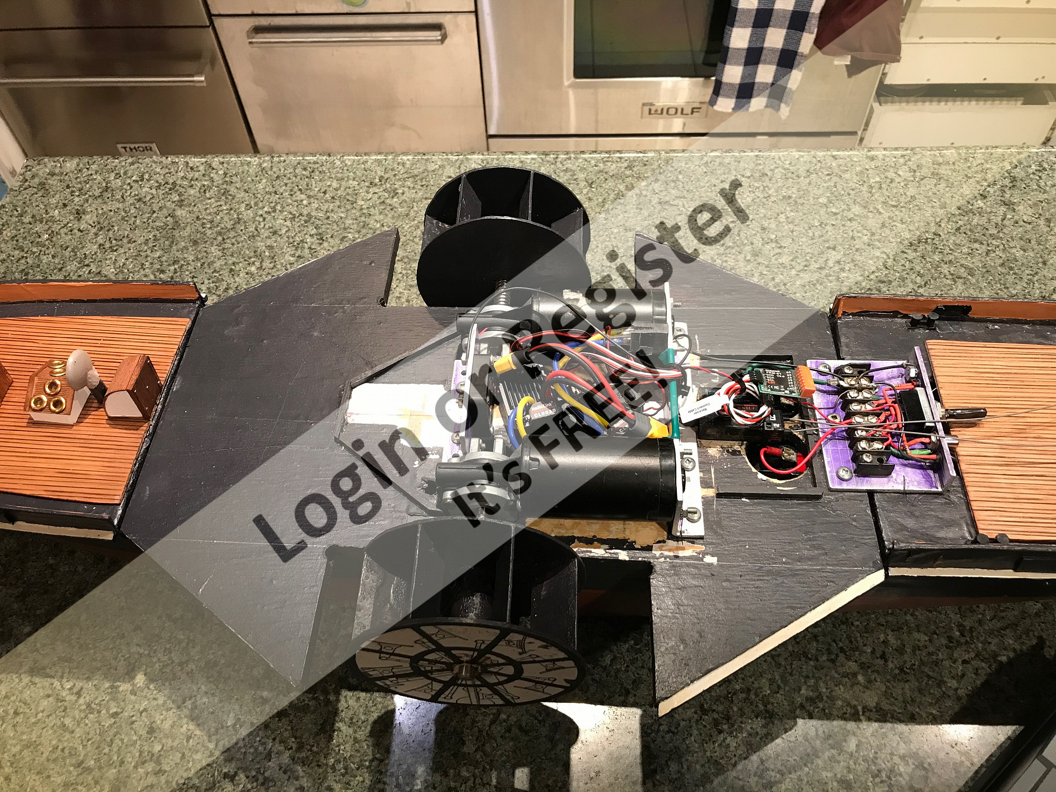 Not only did you answer promptly but you did it in a very thorough way and I thank you, I really like detailed and informative answers. But before I get into the merits of the question, I welcome you on my behalf to this site, I am really happy that there are people like you (the photo of your lab has favorably impressed me and I like to learn). I signed up to this site, skillfully administered by Stephen (Fireboat), thanks to AndyN's report more than a year ago. You must excuse my English, but I use Google Translate. In your exhaustive description you anticipated some of my questions. I imagined that the motors can be controlled separately. What do you mean by "snubber network"? I was unable to translate snubber. From my personal experience I imagined that it is three polyester capacitors (not electrolytic), one placed between positive and negative, one between positive and metal casing of the motor and one between negative and metal casing of the motor. Do you mean this configuration? Not having experience with naval models with paddle wheels I just imagined that 180 rpm could be a speed (perhaps) too high. You are confirming this to me and, from what I understand, you will reduce the voltage to reduce the initial speed of the electric motors. I am sure that this works but, then, if you power everything at 6 volts or 7.2 volts, you no longer need to find an ESC that supports 12 volts, you will find many cheap ones up to 8 volts. Two more questions: is the rudder working or will you only use the paddle wheels to turn? What type of batteries will you use? I can't wait to see your model in the water, when the weather is better. ▲