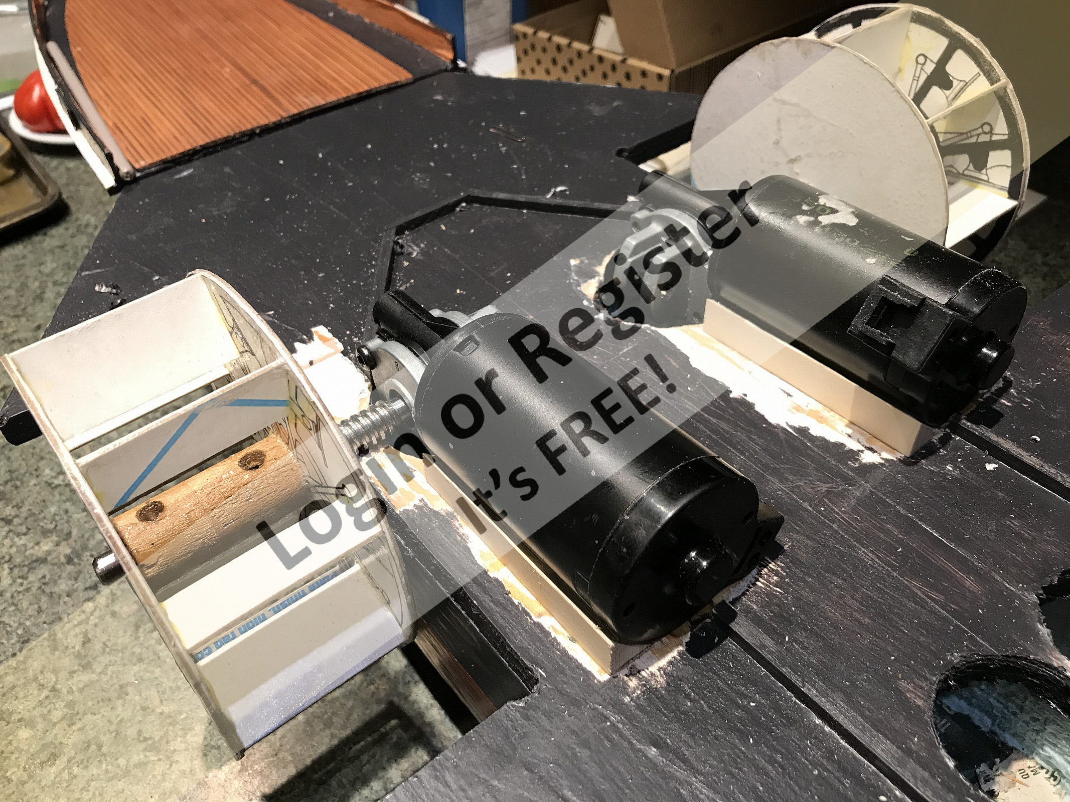 Car window motors (if they are new) cost a lot, at least here in Italy. However, they can also be recovered from scrapped cars (and not by stealing them as you jokingly say) at a low price or for free. The motor of the ship called Francesca was recovered from an old truck. Those for windshield wipers can also be useful. In this case the advantage is that the gear box for speed reduction is already ready. However, I'm not sure if the speed is low enough, I'd be curious to know. ▲