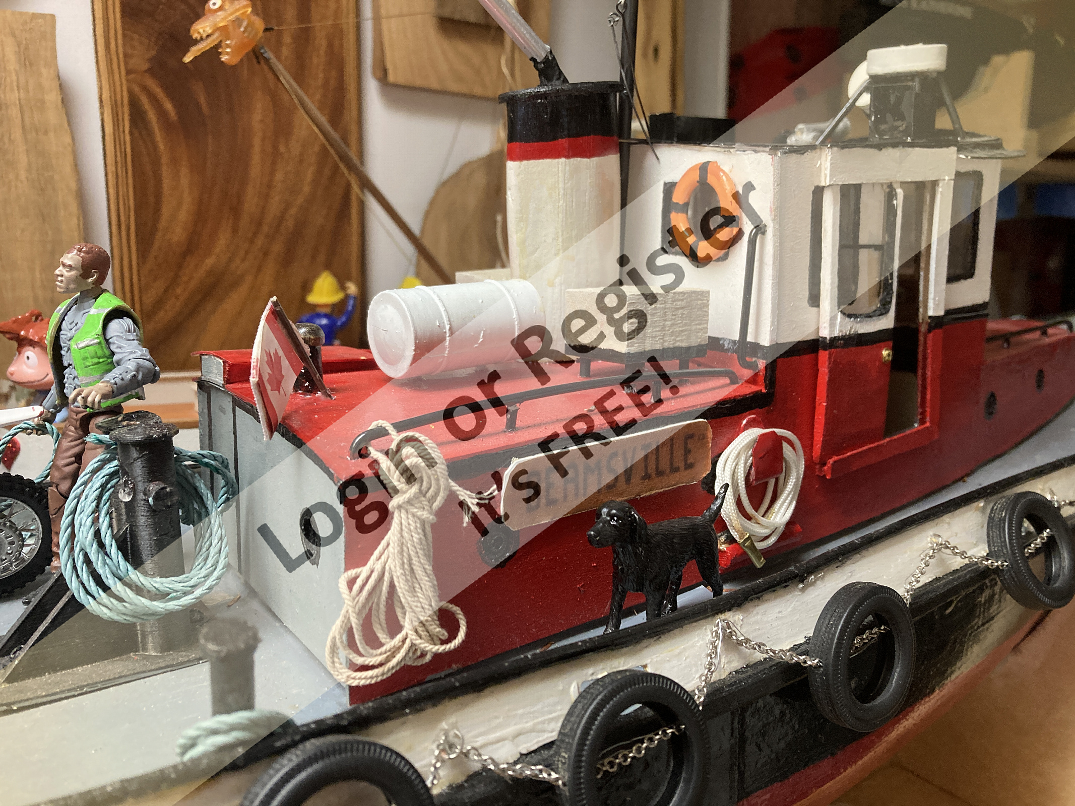 What type of water-pump do you install in your models. My tugboats donโt have firefighting equipment like yours. My tugboats have a firehose system as seen here. (Seen as a white hose near dog in photos) I probably could add a crew member designated to be holding a nozzle and thus operate it for demonstration purposes. (spray the kids) ๐ค ▲
