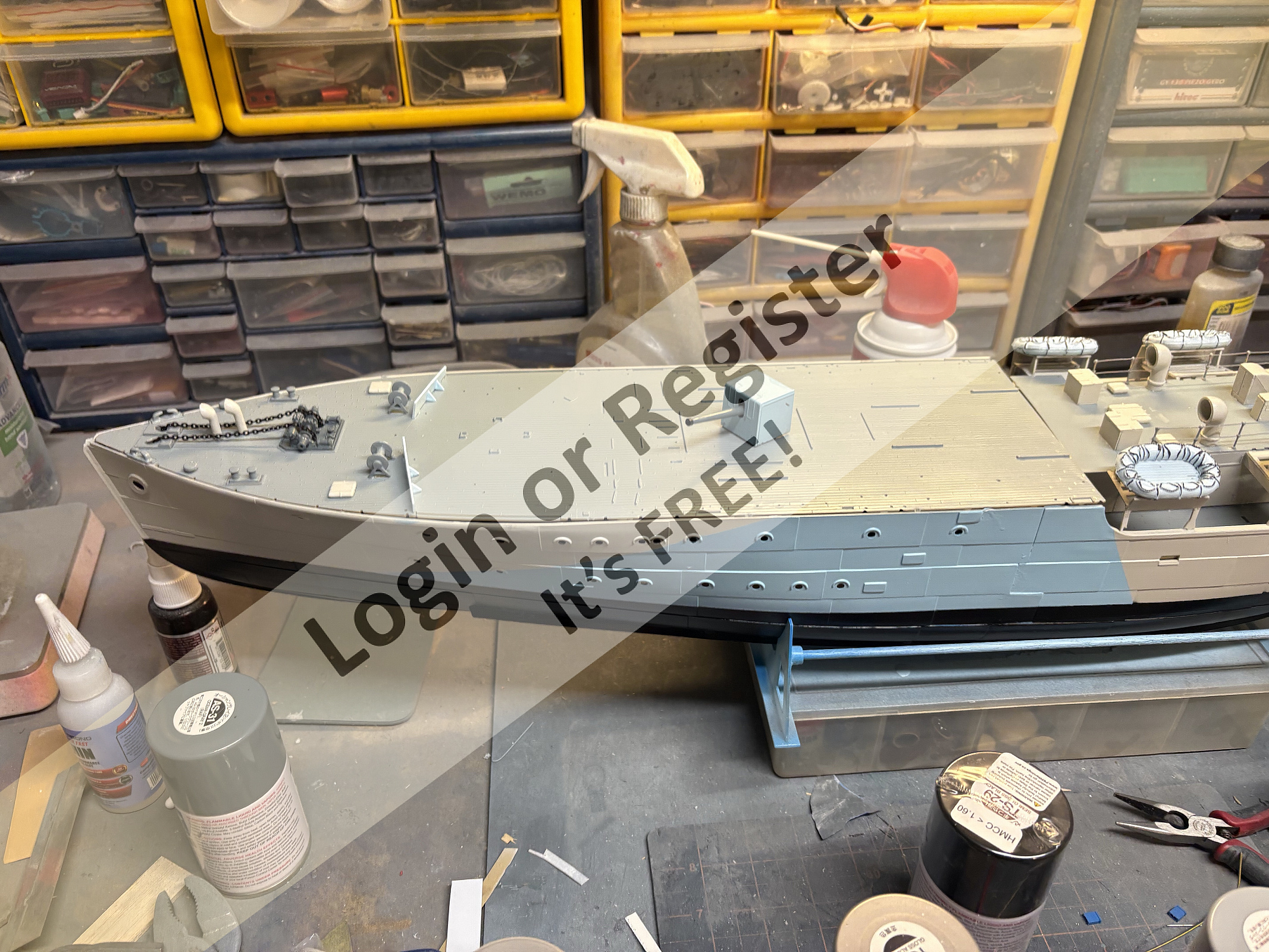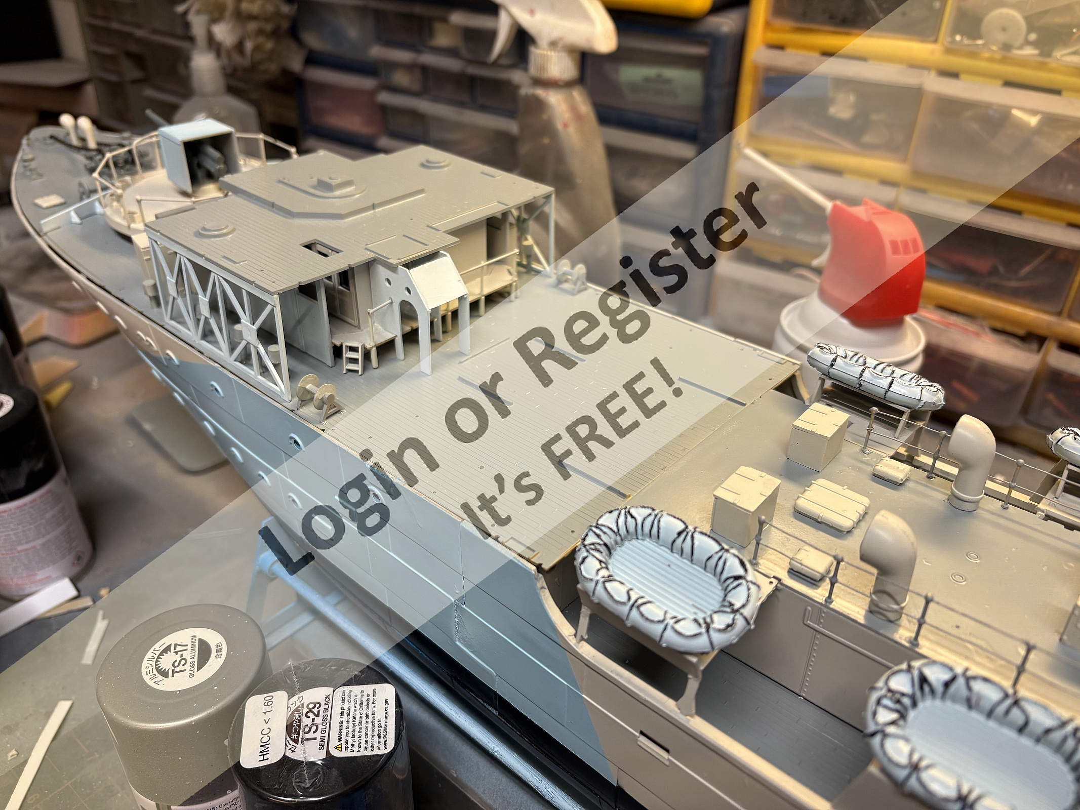 I've enjoyed following the build of your corvette. You've partly answered a question that I've been meaning to ask and that is about camouflage. Perhaps ex Navy types or those interested can answer the following questions. On Allied ships during WWII, was rescue equipment (such as carley floats, life-belts dinghies etc.) painted the same colour as the ship or were they painted brighter colours to aid rescue? I can see on your pictures of Sackville that they follow the colour scheme of the camouflage, but was this normal? Was fire fighting equipment like buckets and fire extinguishers painted red? If anyone can help I'd be grateful. Best wishes Tim ▲