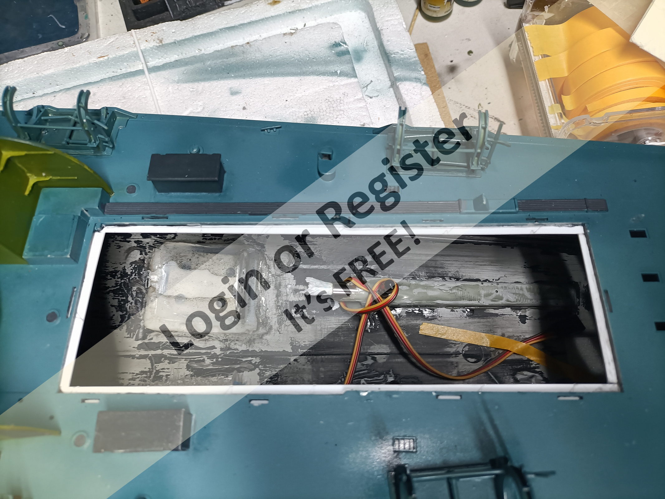 If your kit has port holes, those must also be sealed or glue them in and paint black as light would rarely be visible during operation. For the access below deck, adding a plastic bulwark around the opening is a safe way for keeping water out. If you like what I am doing ask for more information. My model uses 1 brushed motor. ▲
