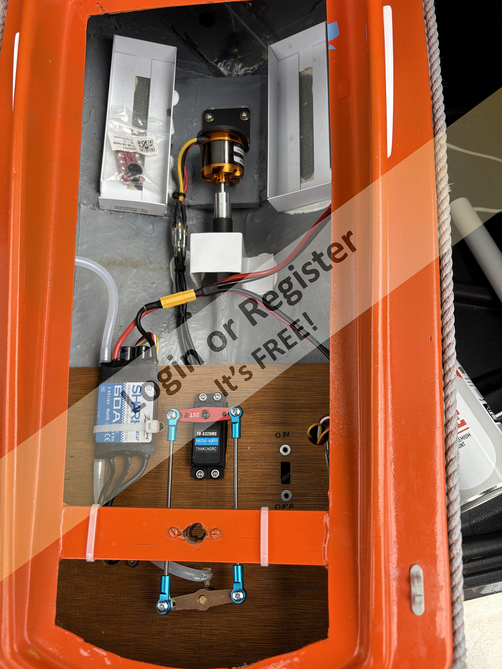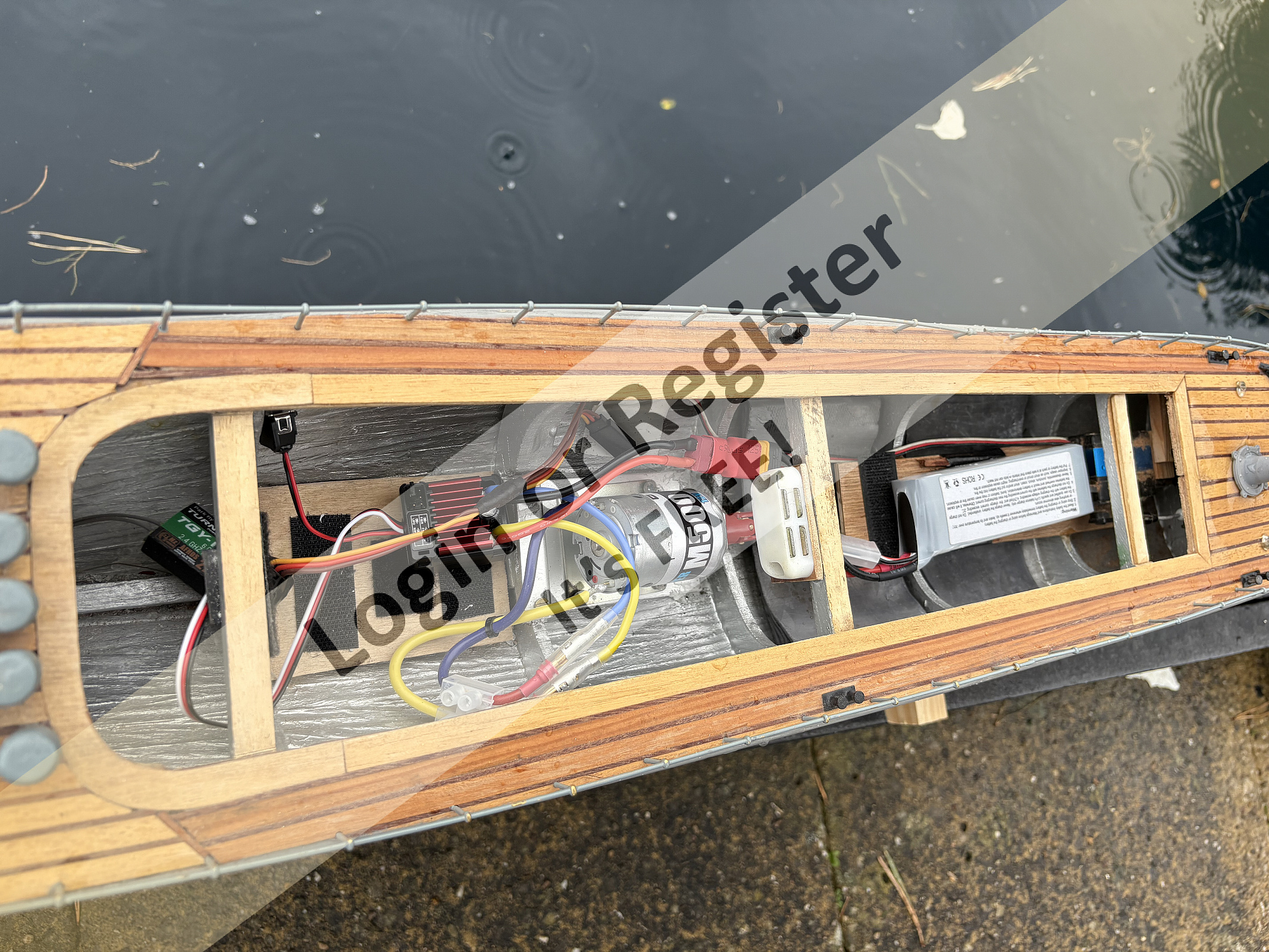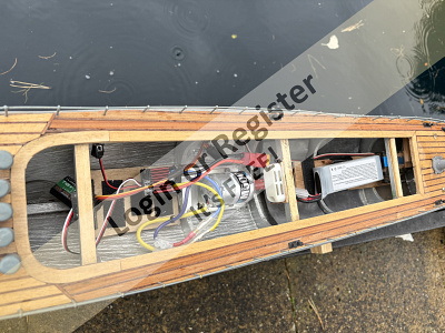The Surpass can produce up to (in theory๐) 580watts with a 4s Lipo, several times more than the brushed original, although the 7.2V buggy pack still seems to give ample revs under load to the 35mm plastic prop. I replaced the ESC with a cheap Rw.rc 50A watercooled one from Ali Express to utilize the original water-cooling system intended for the 540/550 type motor. I managed to 'road-test' it on my back-yard pond, although the rudder was almost permanently activated to keep it within the confined space, so it couldn't really reach its potential. However it was easy to see the vast improvement in performance. It feels considerably lighter than before despite the original 3000mAh NimH 7.2V pack, and with less motor weight up front it rises onto the plane far more easily. Here are a few pics of the new installation, and a video taken by my trusty camera-person (my ever patient wife, Nicki๐๐). Note, the video was completely unrehearsed in one take, mistakes-and-all, eg - the ESC has water-cooling built in, so is a marine type, not aero. If you look closely, you can see the cooling water exit out of the transom. The ESC was barely warm, and the motor slightly warmer but ok, I think - I'll keep an eye on this, as I may have to fit a small fan at the rear of the main hatch, and a vent at the top to draw some cool air through the motor compartment. Also, the transmission is currently rather noisy, despite good alignment of the new motor and shaft (pre-aligned with a solid coupling before putting in the universal; I'm starting to wonder if the coupling itself is 'rattling' somewhat, as it is an all-metal one from Ali Express...?). I also made up a new, larger rudder, which is far more effective than the original, but which needs sealing with grease as a little water ingressed into the rear compartment, driven up the rudder tube by the prop wash. A great little boat, and I'm looking forward to trying it out properly on more open water, as it really is too big for the pond. However, as well as starting the Vivacity build, my next 'small' project might have to be one of the small Lesros...Urchin...? Sea Nymph...? Patrol boat...? These might just about fit ....๐ค Watch this space... Best regards, Nick ▲