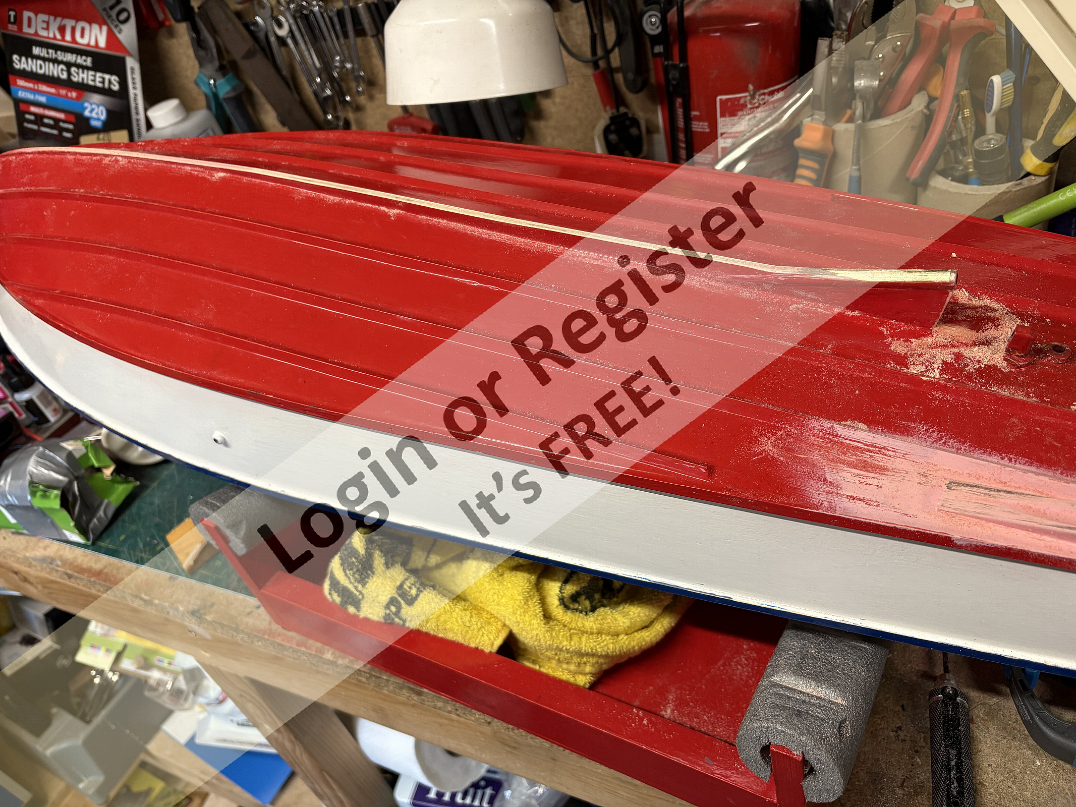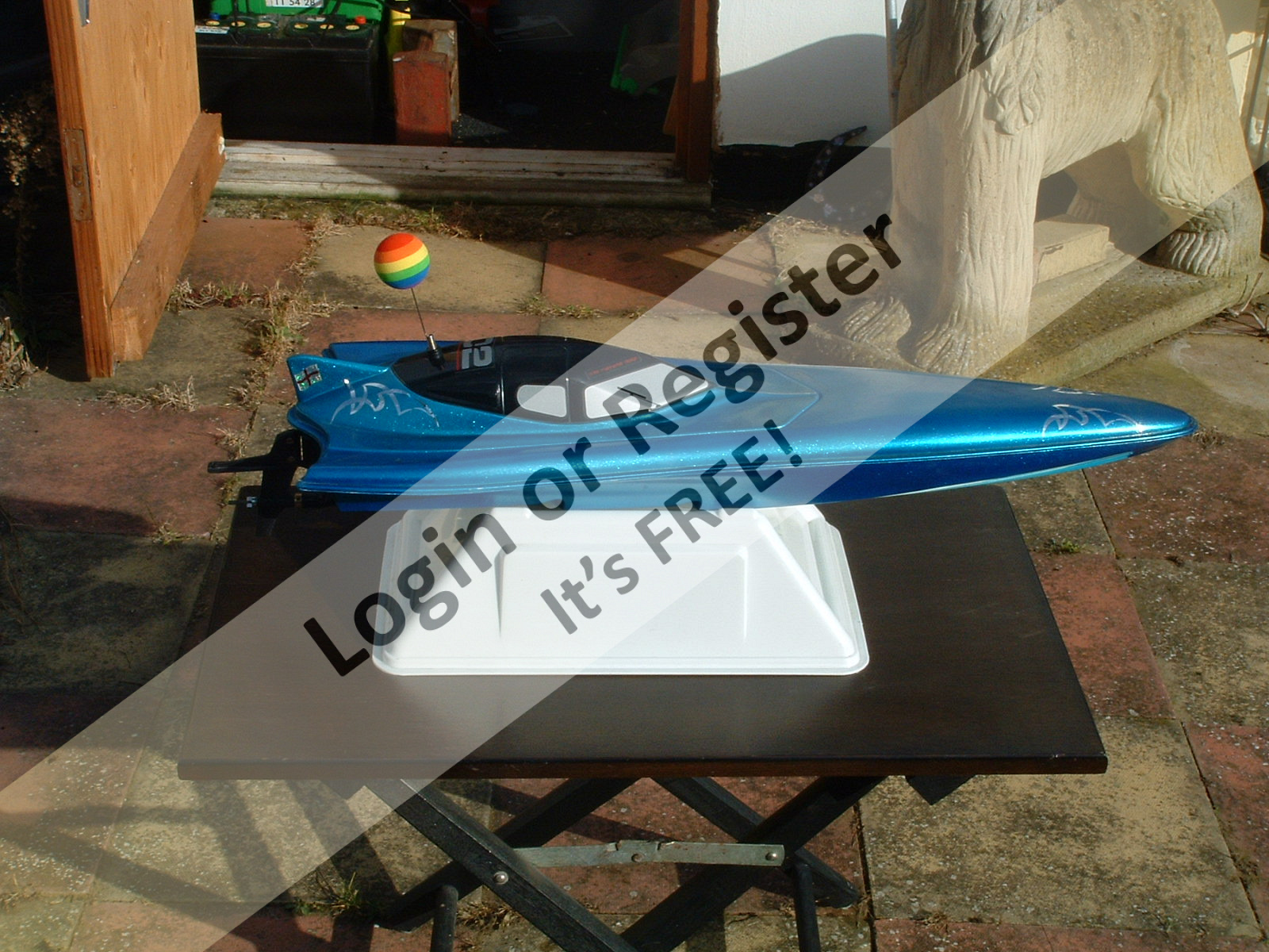 I pictured my Waverider on this Classic Model Power Boat thread previously showing it โas purchasedโ from eBay alongside an inverted view of the hull after I had fitted some home made strakes to it.
