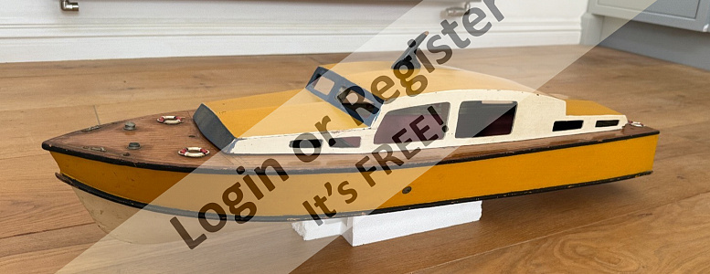 This LesRo Javelin is currently for sale on eBay - but sadly the seller lives in Welwin and it is for collection only. This rules-out both Will and myself as it is too far away for either of us to collect. The model is another from the era of Classic Model Power Boats that was driven by a glow plug motor, so it will need a fair bit of cleaning-up and may well have some areas of wood that are fuel soaked too. A restoration and conversion to brushless motor power would make this into a very nice Classic Model Power Boat that would be really good to see on the water again. Bob. ▲