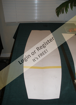 Next was creating the ply deck, then contact gluing onto it a piece of dense 50mm building polystyrene. This was then shaped with a surform file and the chines shaped afterwards using eyeometry. Then the 10mm deck foam was glued on so the deck sheer could be shaped.
