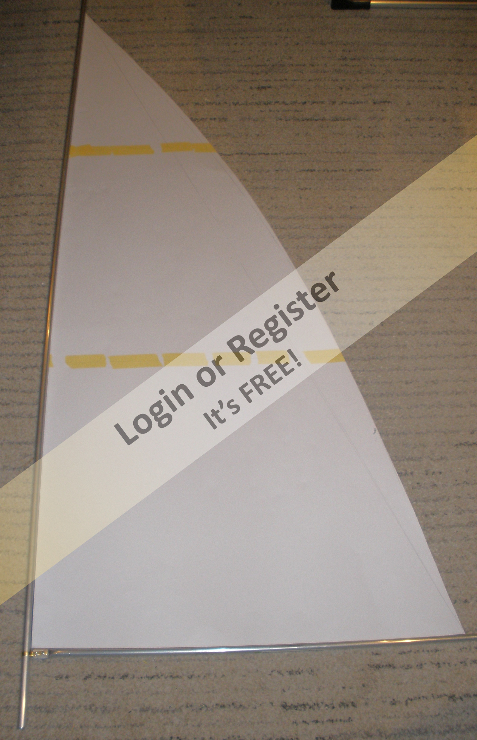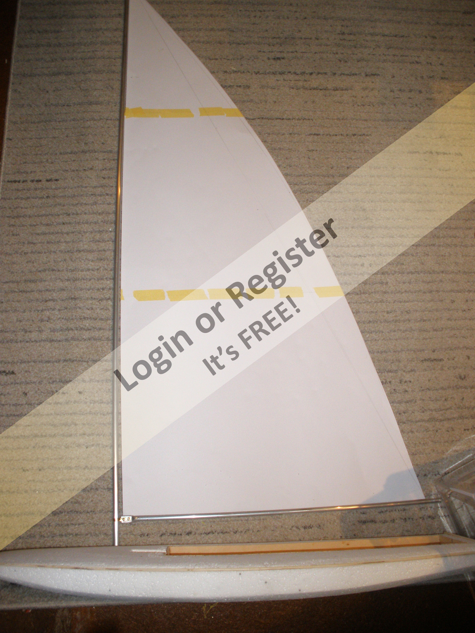 The basic mast was made from 12mm ally tube, boom from 10mm. Sail pattern was cut from art card to the plan. All laid out on the floor to get an idea of what it will look like.