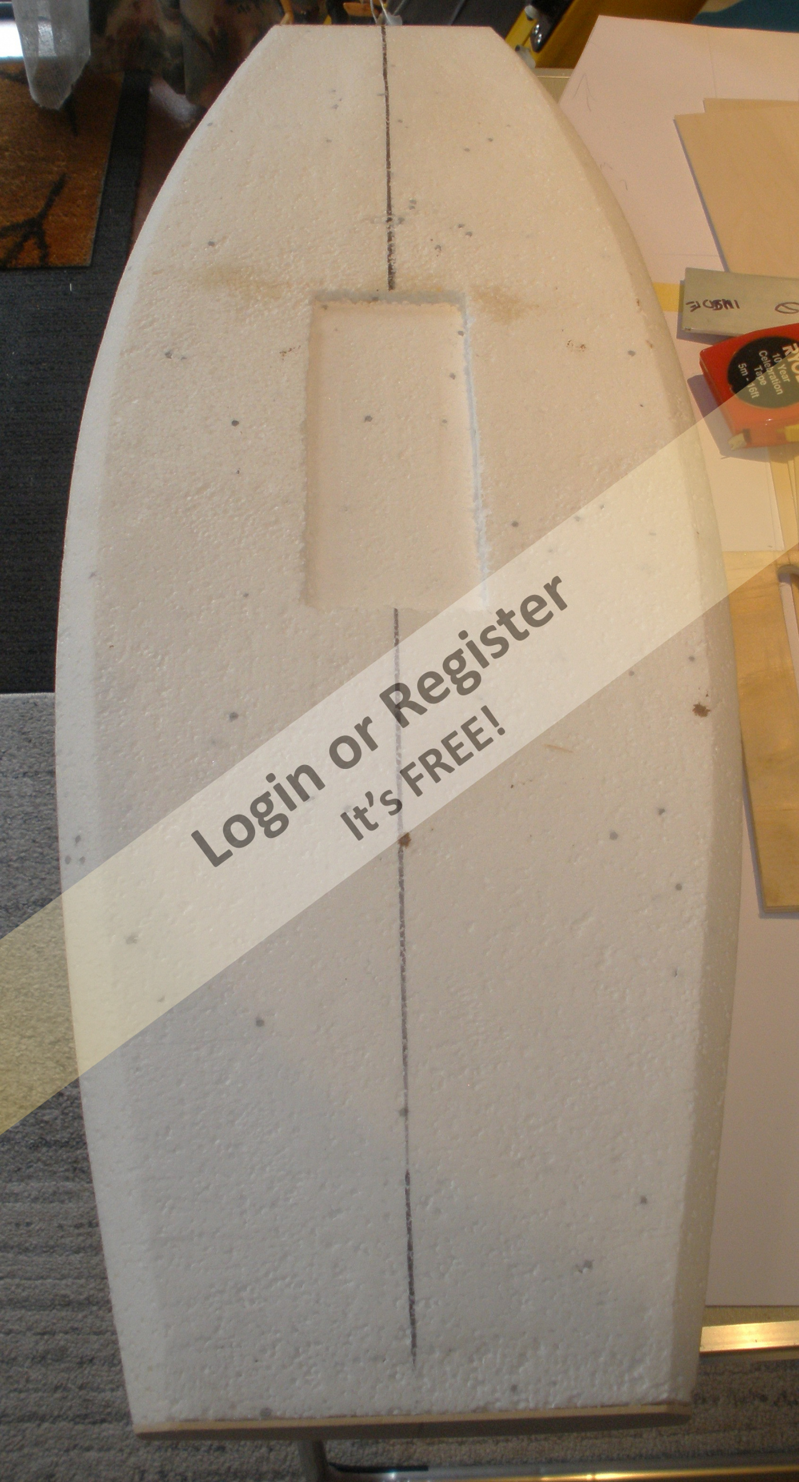 I'm building in foam and glass again to make things easier. It's 850mm long and 310 wide which is roughly 1/4 scale (original is 11 ft)