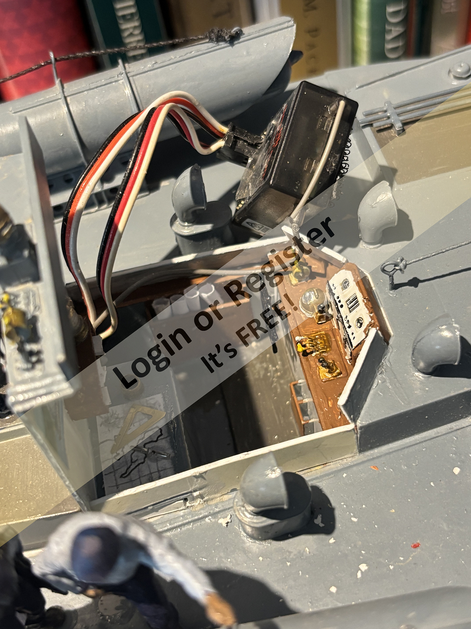 I still donโt like the way you chose to put your receiver and ESC in the bow under the deck. It is s easy to place them in your well of the wheelhouse. I know from our conversation this week that you are not going to be detailing it as I did. So, why not use the space? ▲