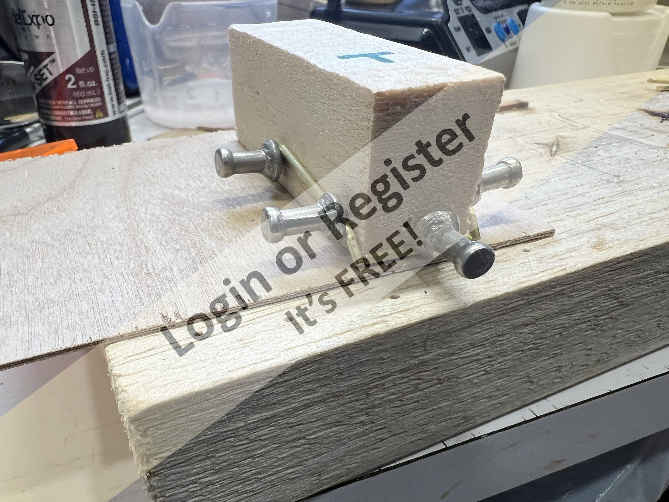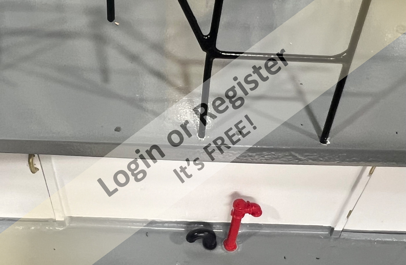 Since Iโm done installing all the loose deck fittings, it was time to start assembling the paddle wheel. While test-fitting the parts, I noticed that the back splash board had a major flaw. The red paint was badly damaged and full of tape marks. This happened because I didnโt allow enough drying time before applying masking tape to paint the other sections. Lesson learned the hard way. To fix it, I had to strip the damaged area, remask everything, wet sand, and repaint. All together I spent about four days reworking the part, but in the end the finish came out much better and smoother than before. Sometimes going backwards is the only way to move forward in this hobby. This time Im using the DECANTING PROCESS. How itโs usually done: 1. Insert a small straw into the spray nozzle 2. Spray into a glass jar or bottle 3. The paint will come out mixed with propellant Let it sit a few minutes until the bubbling stops. (picture 7). Now the paint can be used in an airbrush. In my case, and since Iโm using the Behr No-Drama paint, I decanted the spray can and diluted the propellant-free paint 50/50 with mineral spirits. Using my airbrush at about 25 psi, I got excellent results. Now I will wait 48 hours before applying the Krylon Crystal Clear sealer. ๐ ▲