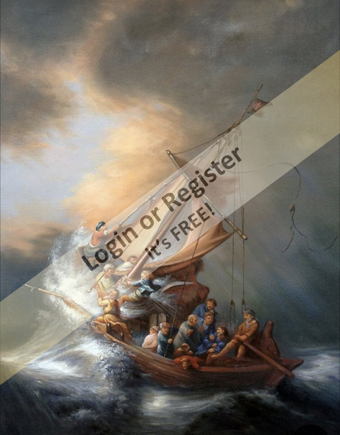 The first one is, of course, The Storm on the Sea of Galilee by Rembrandt van Rijn. It’s a powerful scene, but you can notice that the artist took some liberties—like adding a flag to the boat. As far as historians can tell, fishing boats of that time didn’t carry flags.