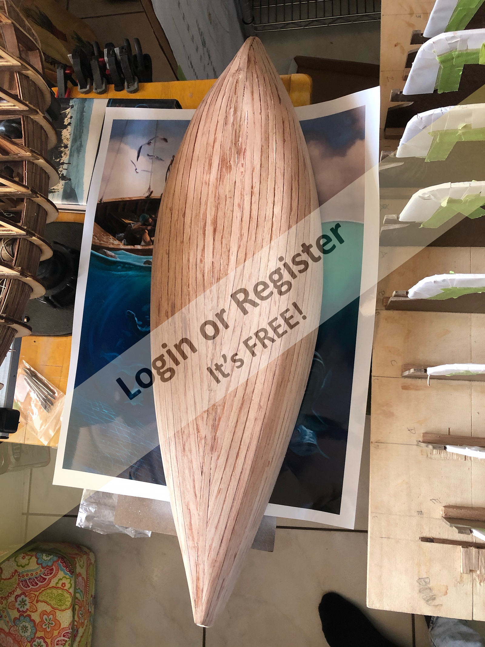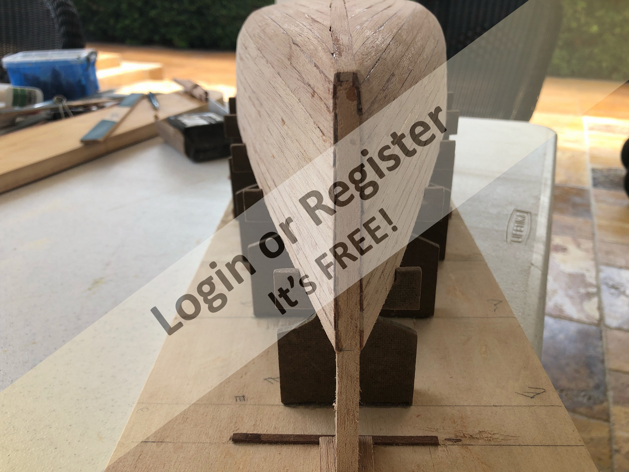 At this point, the model was still on the strongback, but it was already giving a very good idea of how elegant the finished boat would look.