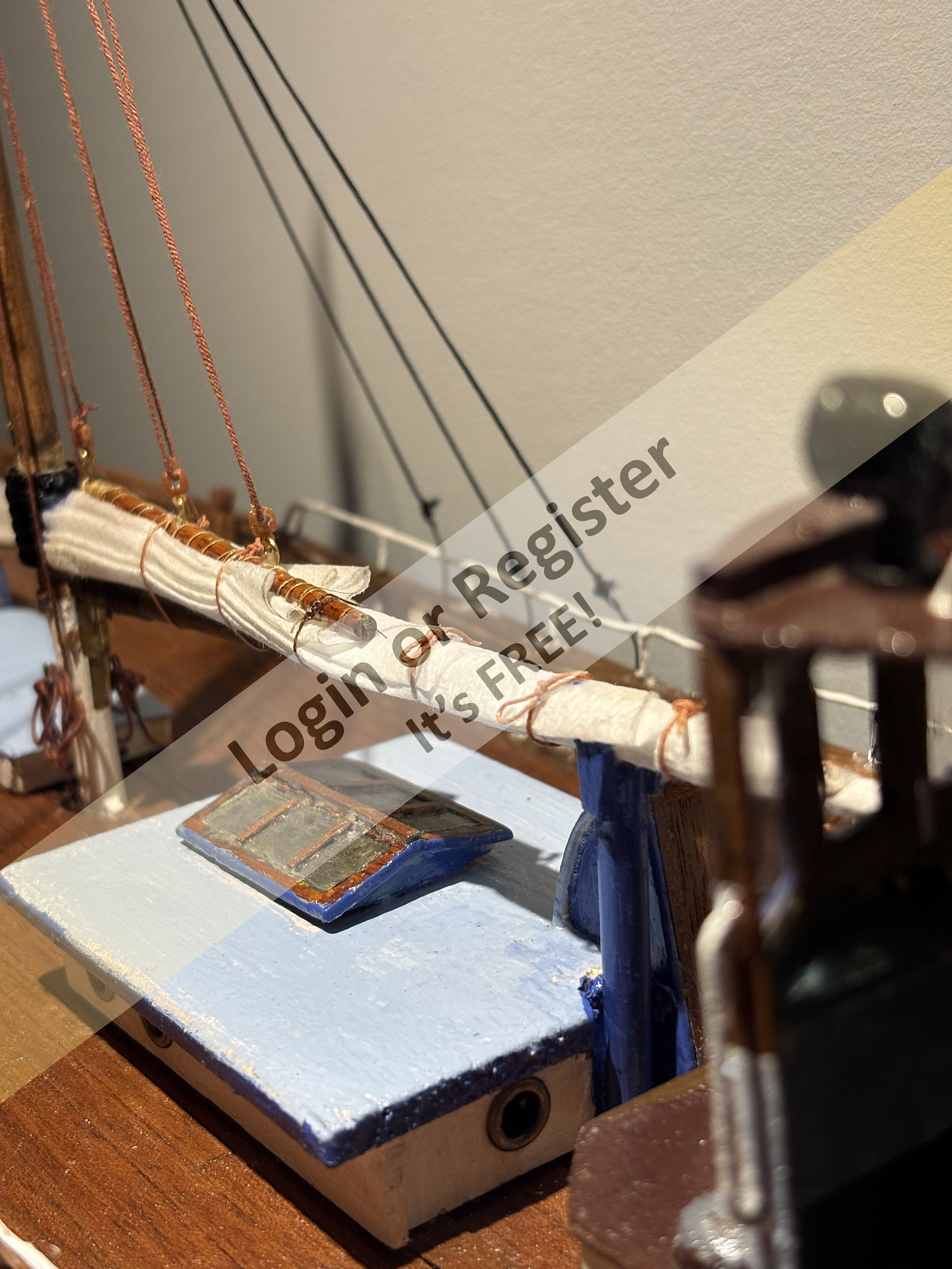I have been adding furled sails to my latest project, Corinna Mae. Patterned after the Selmaโ€™s furled sails.