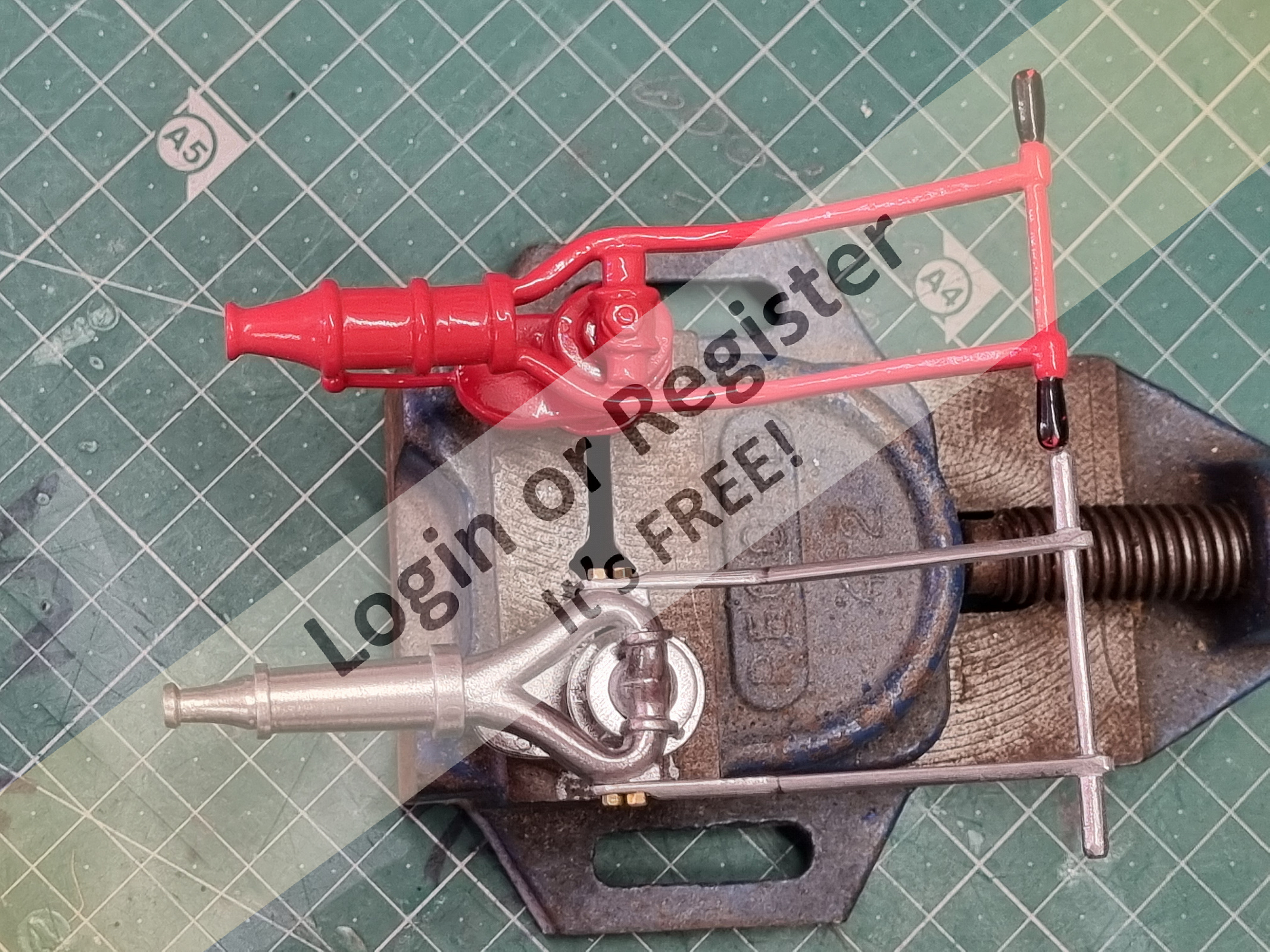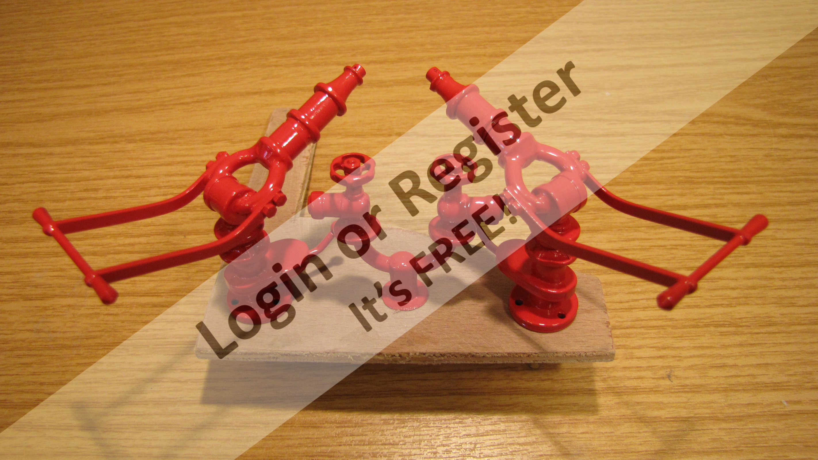 The original fire monitors in pics 4 & 5 are more like representations of the real thing with more regard to sturdiness and practical construction and less regard to accuracy. My new pattern is more realistic and true to scale but possibly not as robust the old 'clumsy' design. White metal castings are very heavy and the alloy is rather weak so ideally they should be cast in something stronger like bronze or perhaps even 3D metal printed but then the cost of production may make them too expensive. Rob. ▲