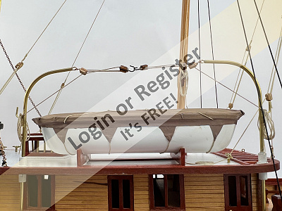 The mast on this is 1.486m tall, - sail is -luff -11.295, foot 609mm, so quite large for a small boat. The full sized boat is a lot of fun to sail, so this model will be interesting to sail. Unfortunately, without the human input required, and being a performance boat, it may assume the attributes of a submarine in a stiff breeze, - time and testing will tell.