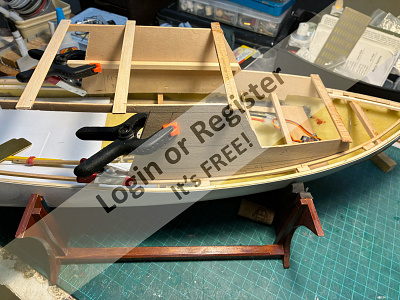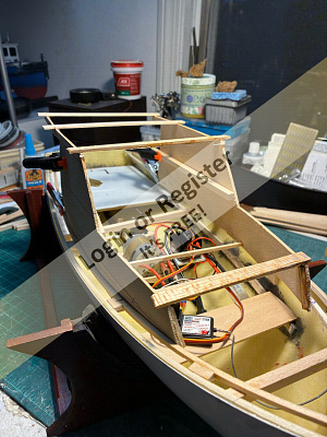 Well, I'm about to start my Vosper. I painted the crew, glued the transom in place. made a rudder up because I'm just thinking about how I'll propel the boat, rummage around in the drawers for a motor and drive shaft prop that may take a while. The model is about 24 inches in length, and the third photo shows that it takes 7 screws to hold it to the hull easily, but it may be a problem changing batteries. Lots of thinking will be needed to R/C the Vosper.P/S Ron gave me some ideas so thanks, Ron.