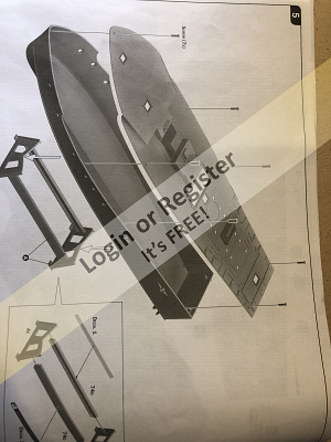 This kit has been gone thru, some of the vac formed parts have been cut out but not finished, but itโs very buildable. First thing I had to do is build a stand. I pulled my trusty Ryobi scroll saw out from its hiding spot under the bench, got it set up, then the blade brokeโฆand I couldnโt remember where I put my spare blades. So I built the stand up using plasticard for the uprights which I reinforced with 1/8 in ply strip, and used dowels to connect them together. I then looked at the kit and plans.