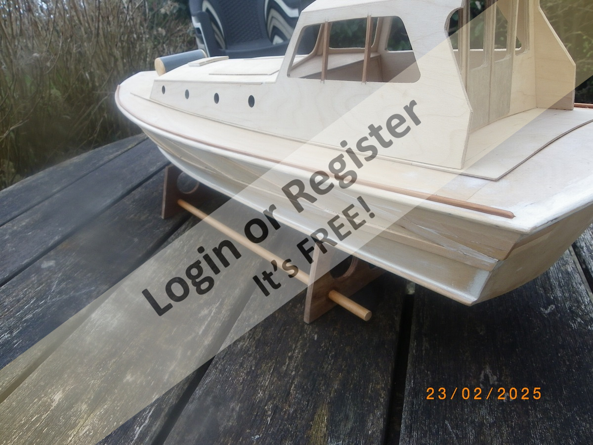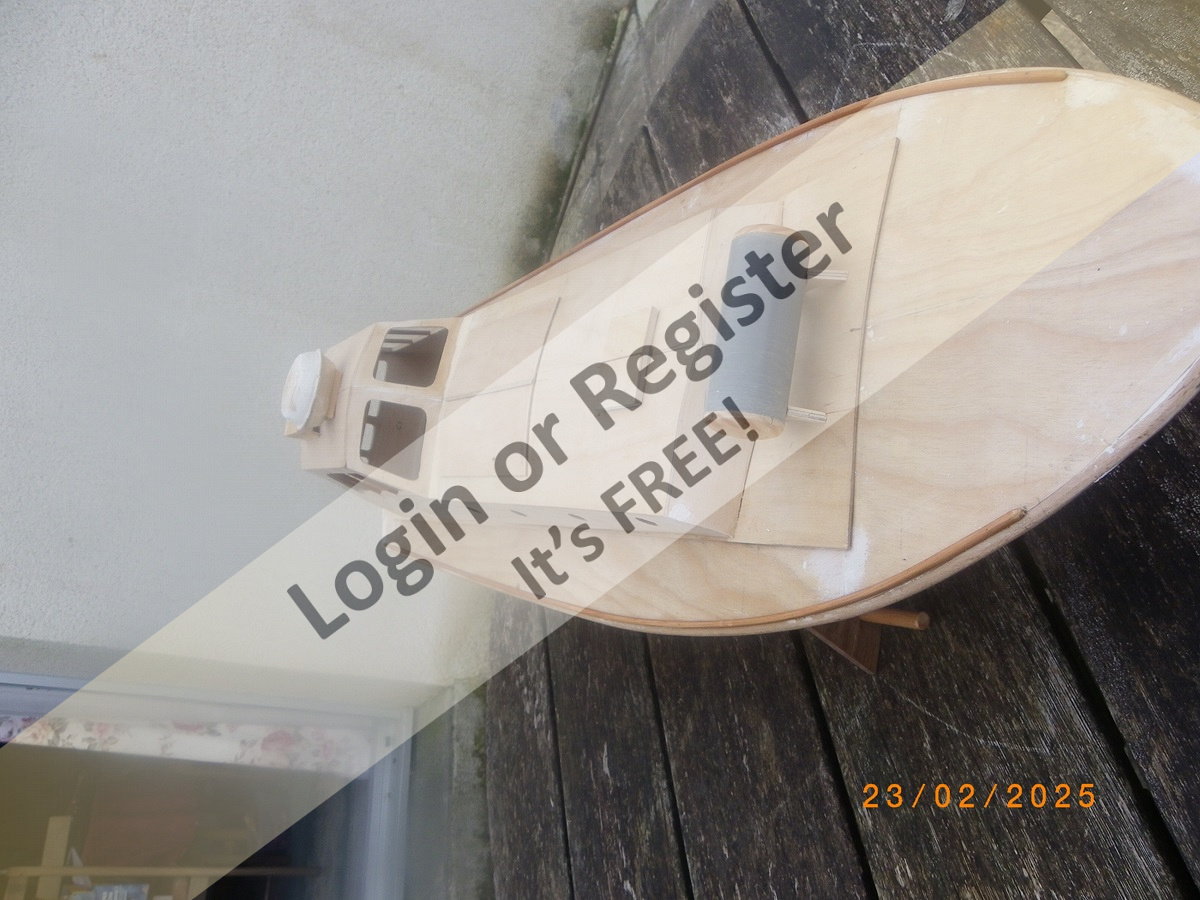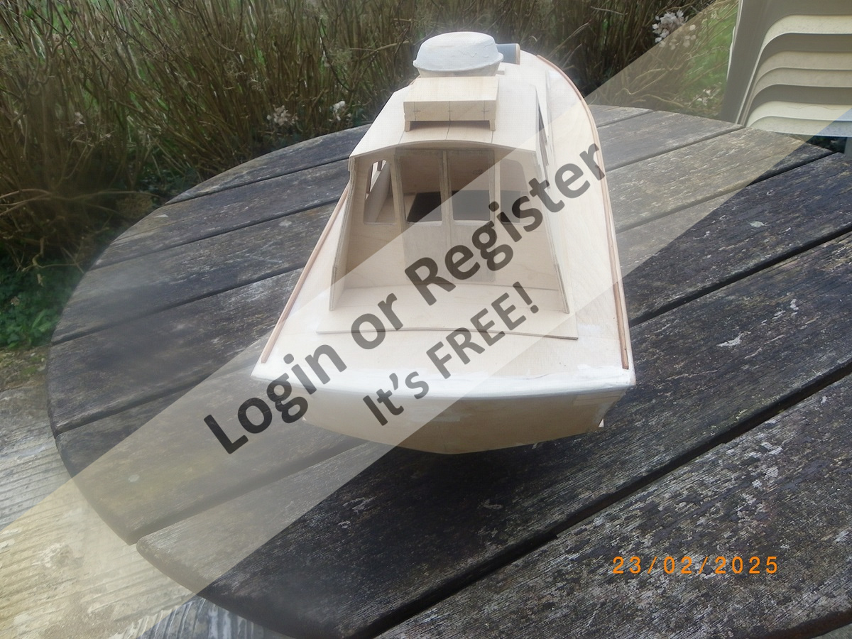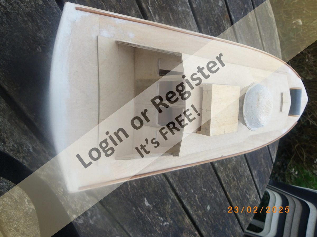I await a brighter spell of weather promised for later in the week when hopefully a sea trial can be made to ascertain flotation line, ballasting etc after which I will wield the spray cans etc.