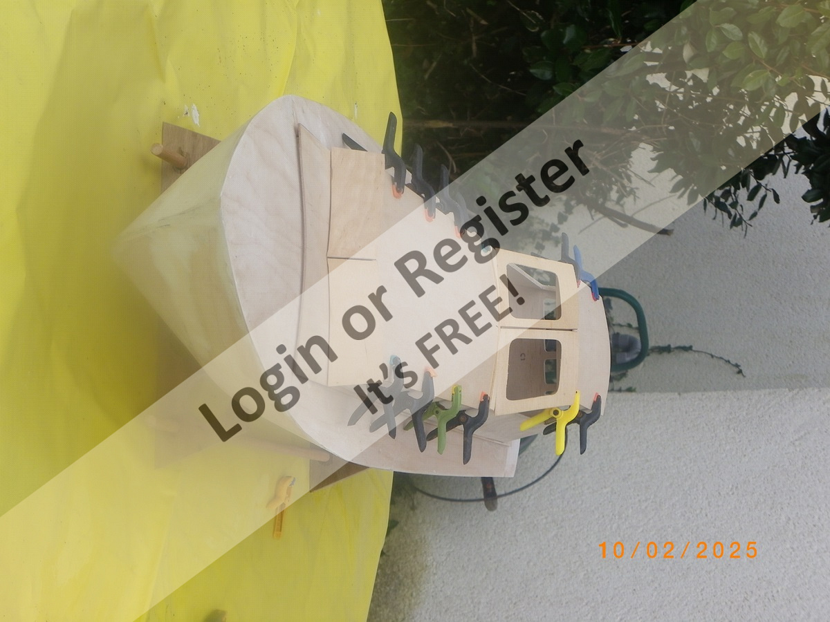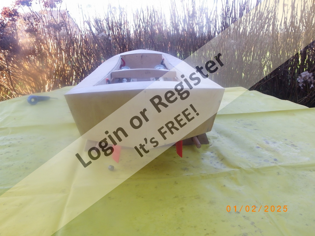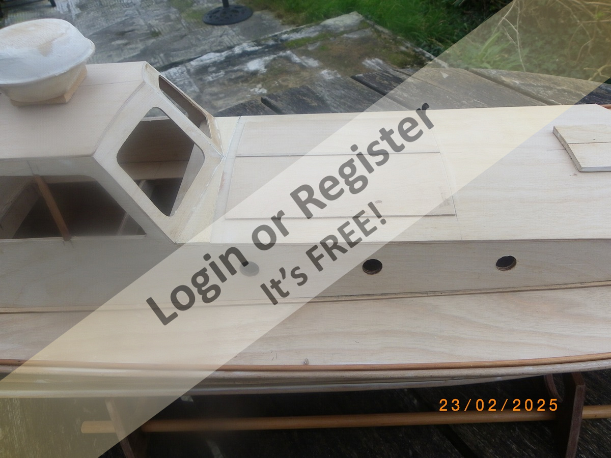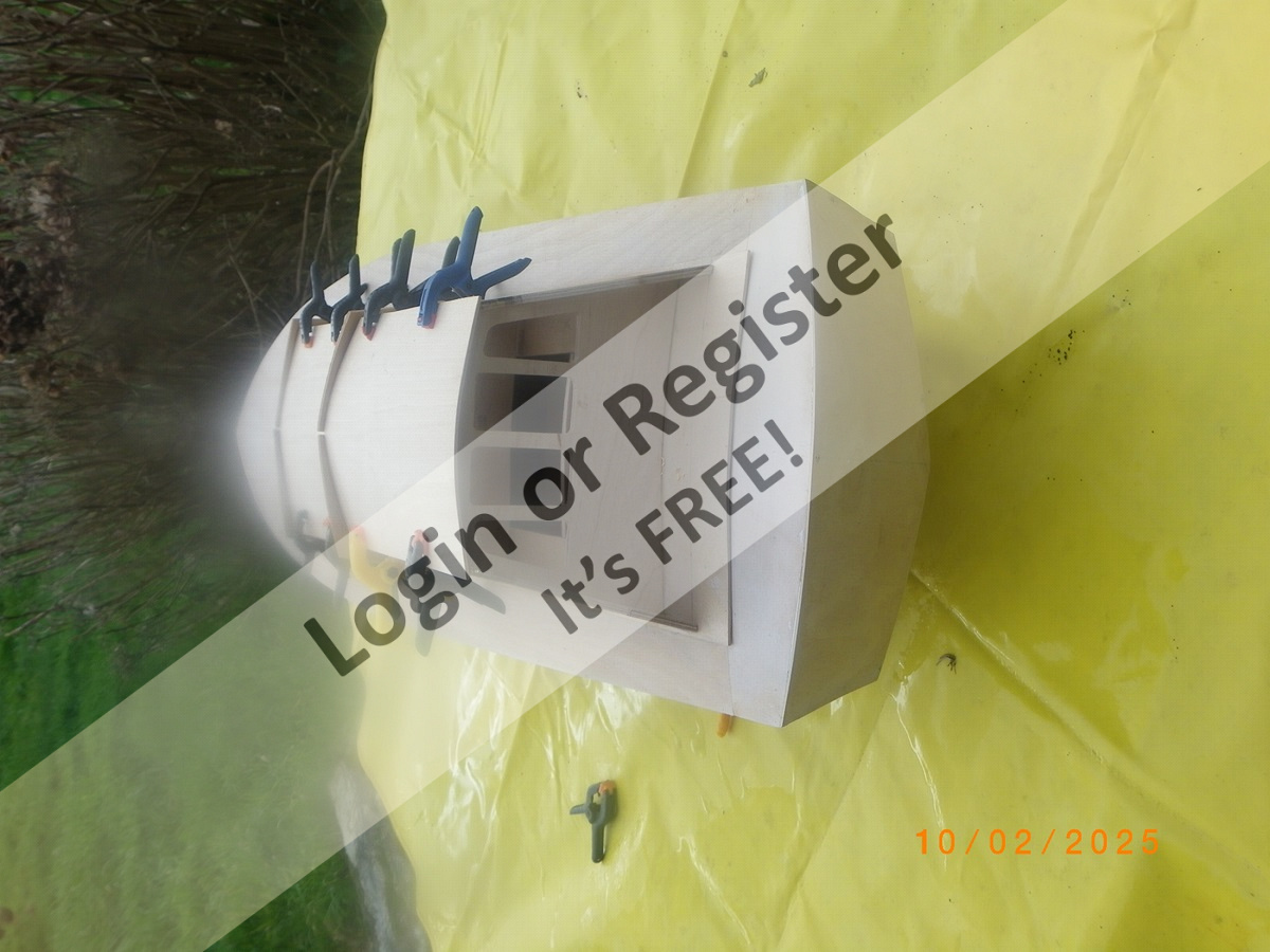 I await a brighter spell of weather promised for later in the week when hopefully a sea trial can be made to ascertain flotation line, ballasting etc after which I will wield the spray cans etc.