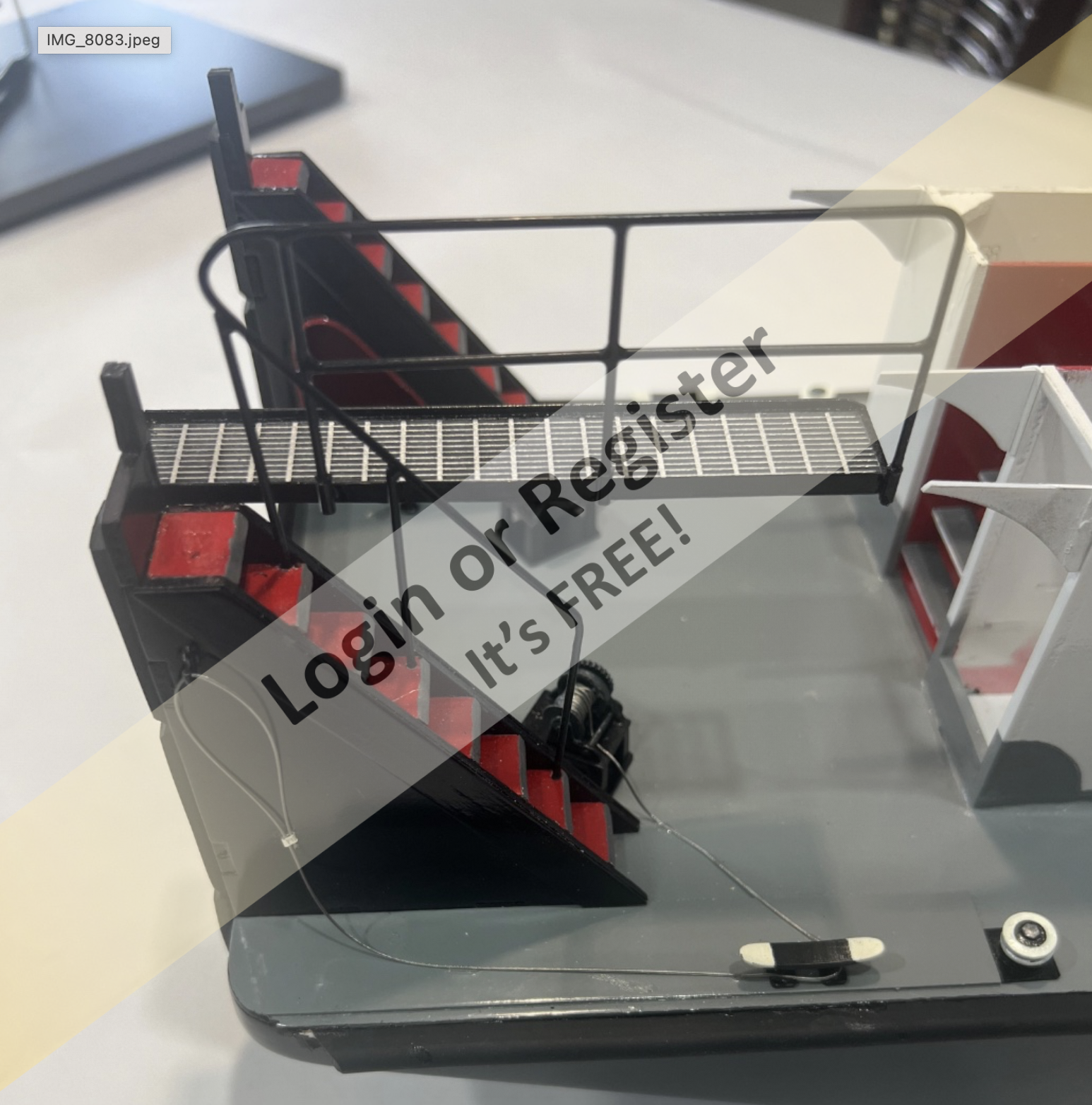 Alessandro, This model will be fully R/C and equipped with plenty of working lights. It hasnโt been an easy buildโespecially the railings, which took me quite a long time to complete. Iโve also added several of my own modifications, such as the pilothouse navigation lights and the catwalk that runs from the main structure to the push knees. ๐