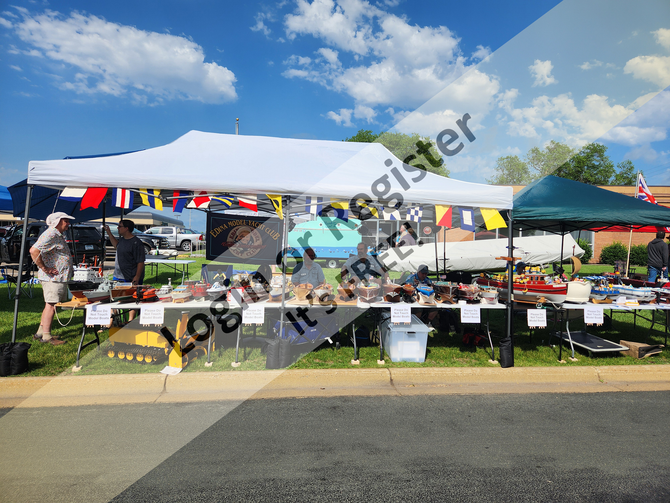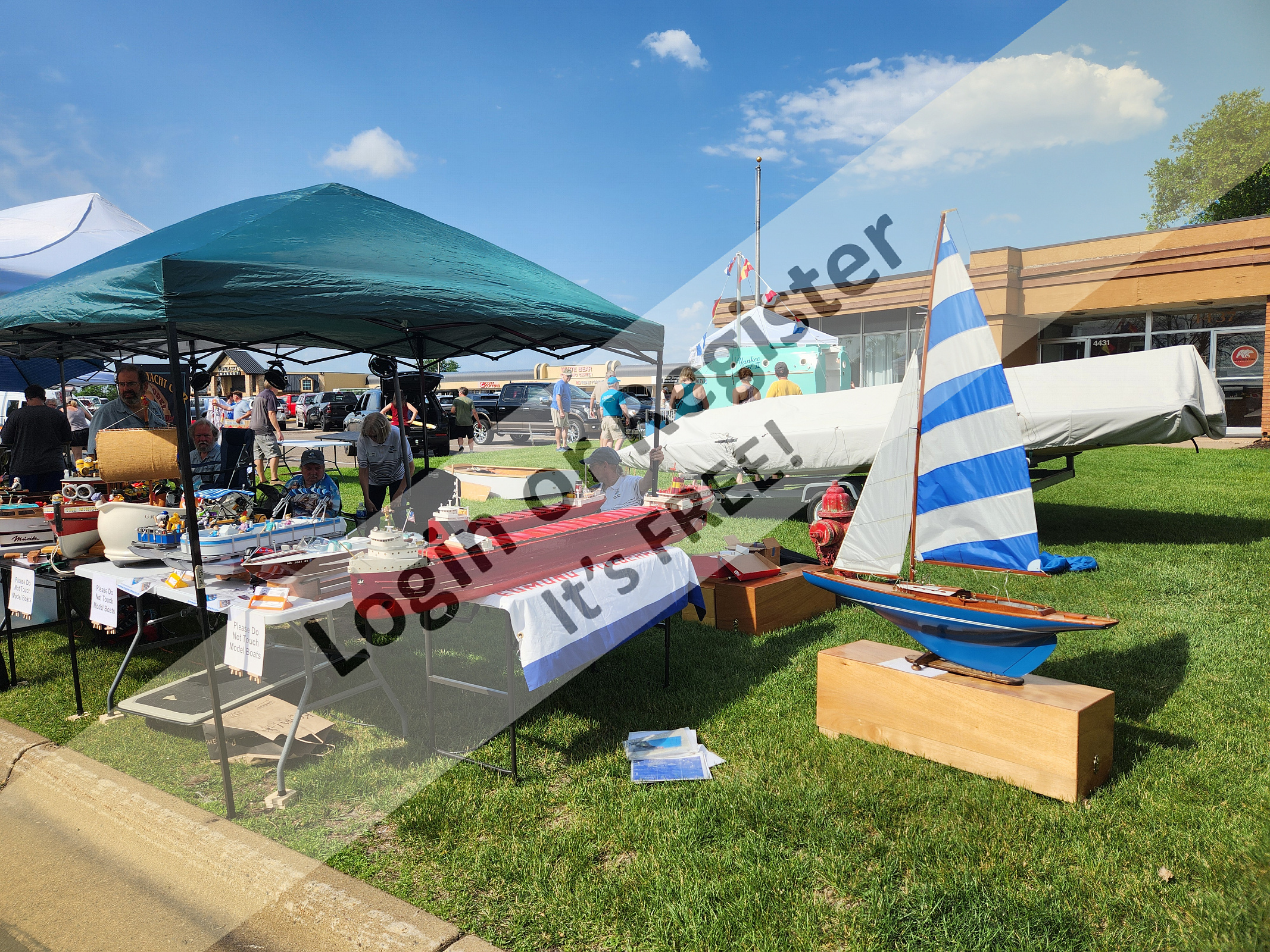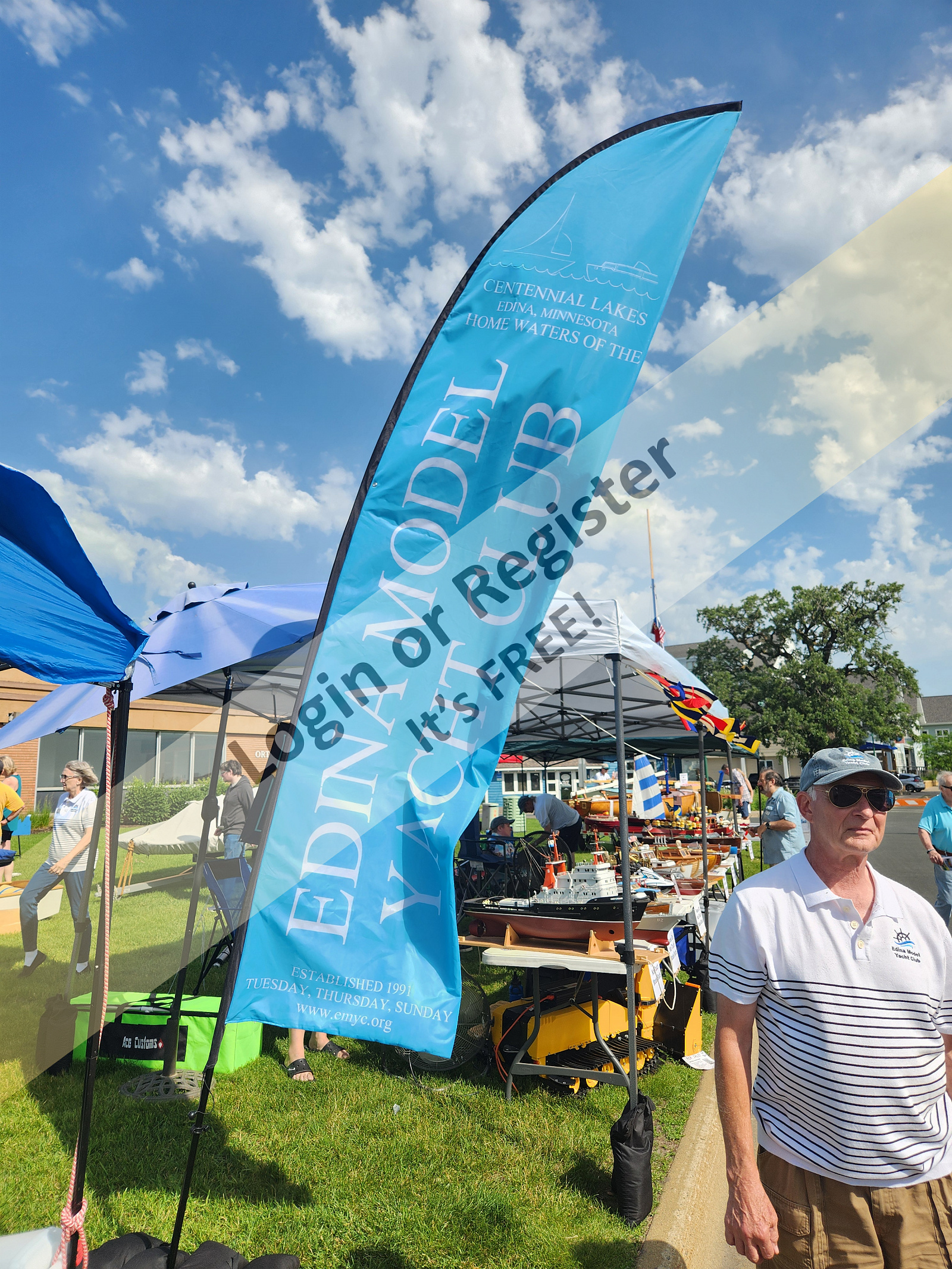 The Edina Model Yacht Club was again invited to set up a display at the annual White Bear Lake Classic and Antique Boat show. We had a 30' X 10' tent with 30 boats on display (plus one scratch built 3D printed RC snowblower ... providing battery power to run fans all day). The Classic and Antique show had 65 beautiful full-size boats being displayed. Despite it being HOT, windy, and muggy all day, there was a good crowd of people attending the event. Our display generated a lot of interest all day long.The last picture is our club president. Dave B