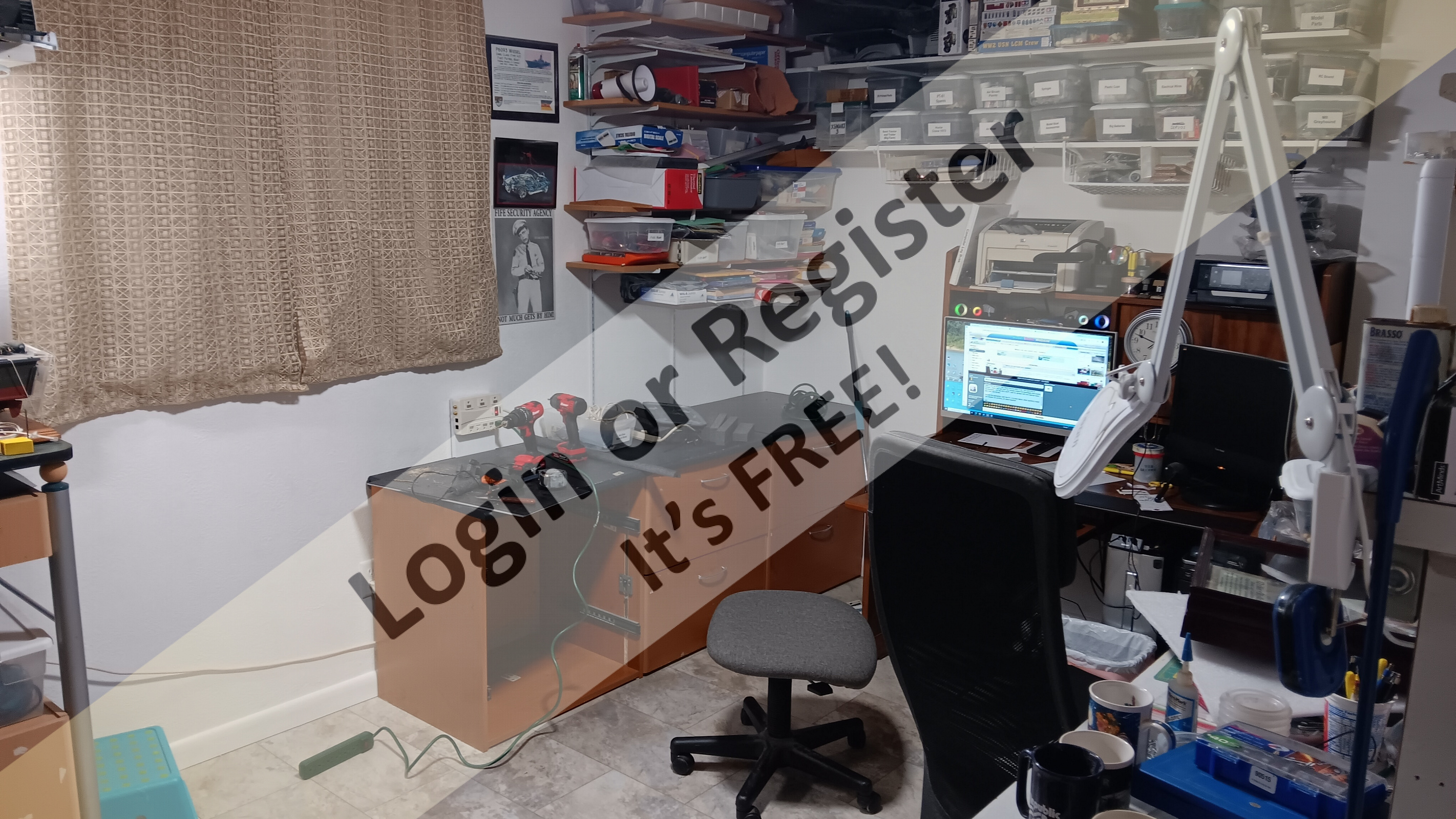 True Dave. However, I have most of my hobby stuff close together. I have a large technician's bench from where I used to work, plenty of shelving, cabinets, desk, two computers and a bunch of printers. ...or at least it will be when I am done moving back in as I am working on tonight. Down the hall from my kitchen where the beverages and snacks are available. For the dirty stuff I use my garage with the heavier tools, also near the kitchen.