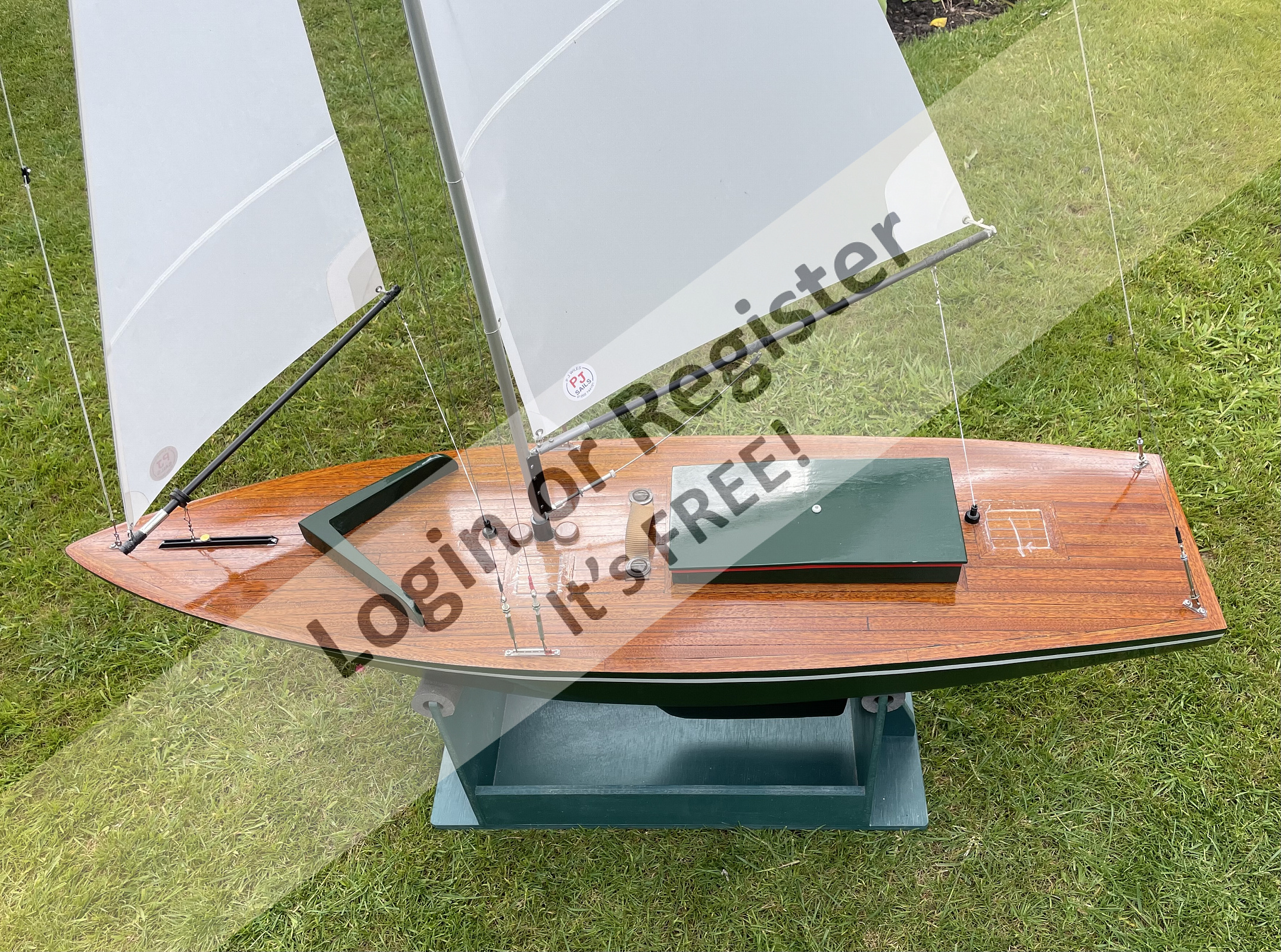 Length 46โ beam 13โ Height (bottom of stand to deck) 16โ O/All height is 77โ Sails are professionally manufactured by P.J.Wiles (PJ Sails) Sold without transmitter and receiver. Asking ยฃ250