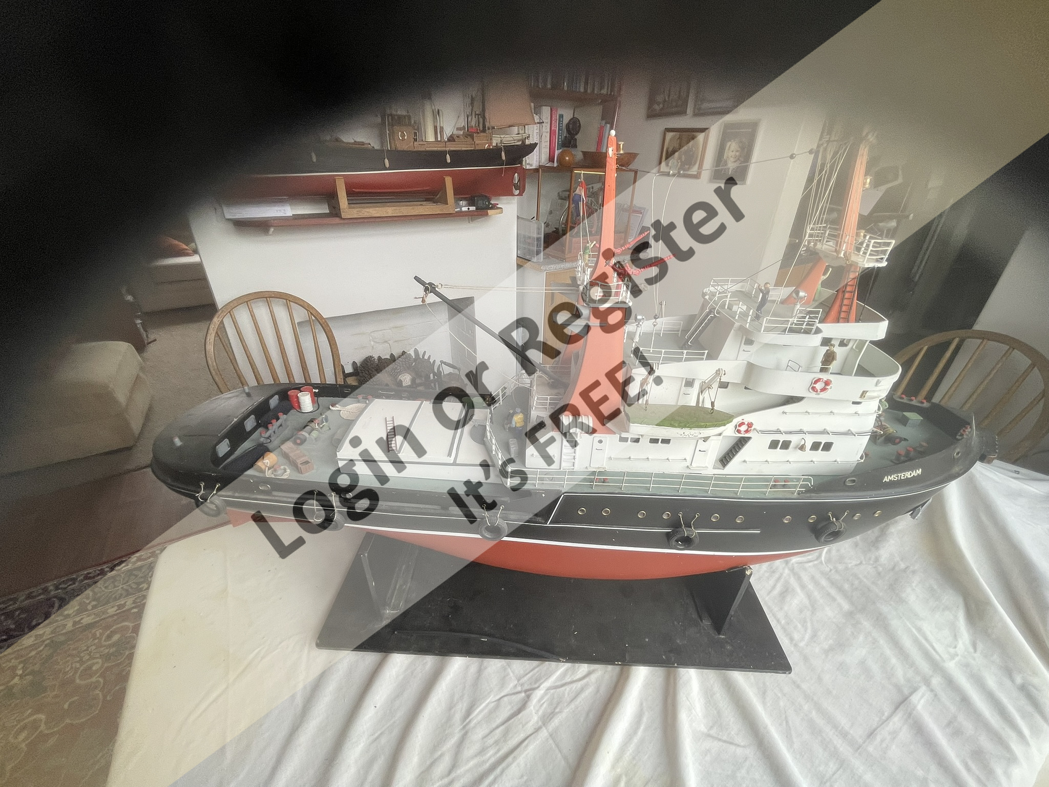 Up for sale is an Amsterdam RC Tug boat. The kit original retailed for over ยฃ400 and I believe it is currently out of production. Here are some specifications on the model Artesania Latina Amsterdam AL20201 RC Ready Tug Boat 1:50 The Amsterdam tugboat was built at the Johan Alkers shipyard in Hamburg, Germany in 1971. It was specially built to handle and serve very large ships and tankers of this modern age. The other sister ships were built called Malabar, Tenace & Centaur, these are serving at the moment with the French Navy. This tug boat model features a strong ABS plastic hull and wooden superstructure. The model comes includes propeller, prop shaft, rudder, plus all the plastic and metal fittings needed to make the model look very authentic. You requires radio gear to complete if you want to work on radio control for this tug boat model. Specifications : Scale 1:50 Length: 1060mm (41.7โ) Height: 600mm (23.6โ) Width: 280mm (11โ). This model is for sale in the UK only and collection in person is required from the PR9 area - payment by cash for direct bank TX only no Paypal.
