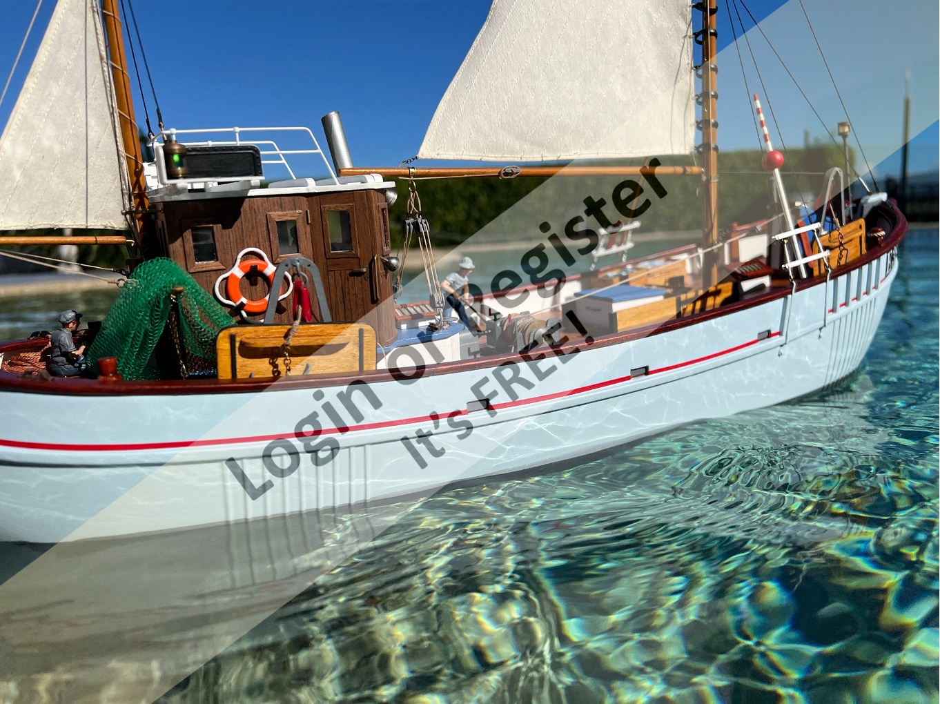 The kit in the picture looks old. The kits currently on sale have the fittings in with them. A test is to check the fittings, if the trawl board arches are brass it is an older kit if they are laser cut wood they are modern and rather fragile.