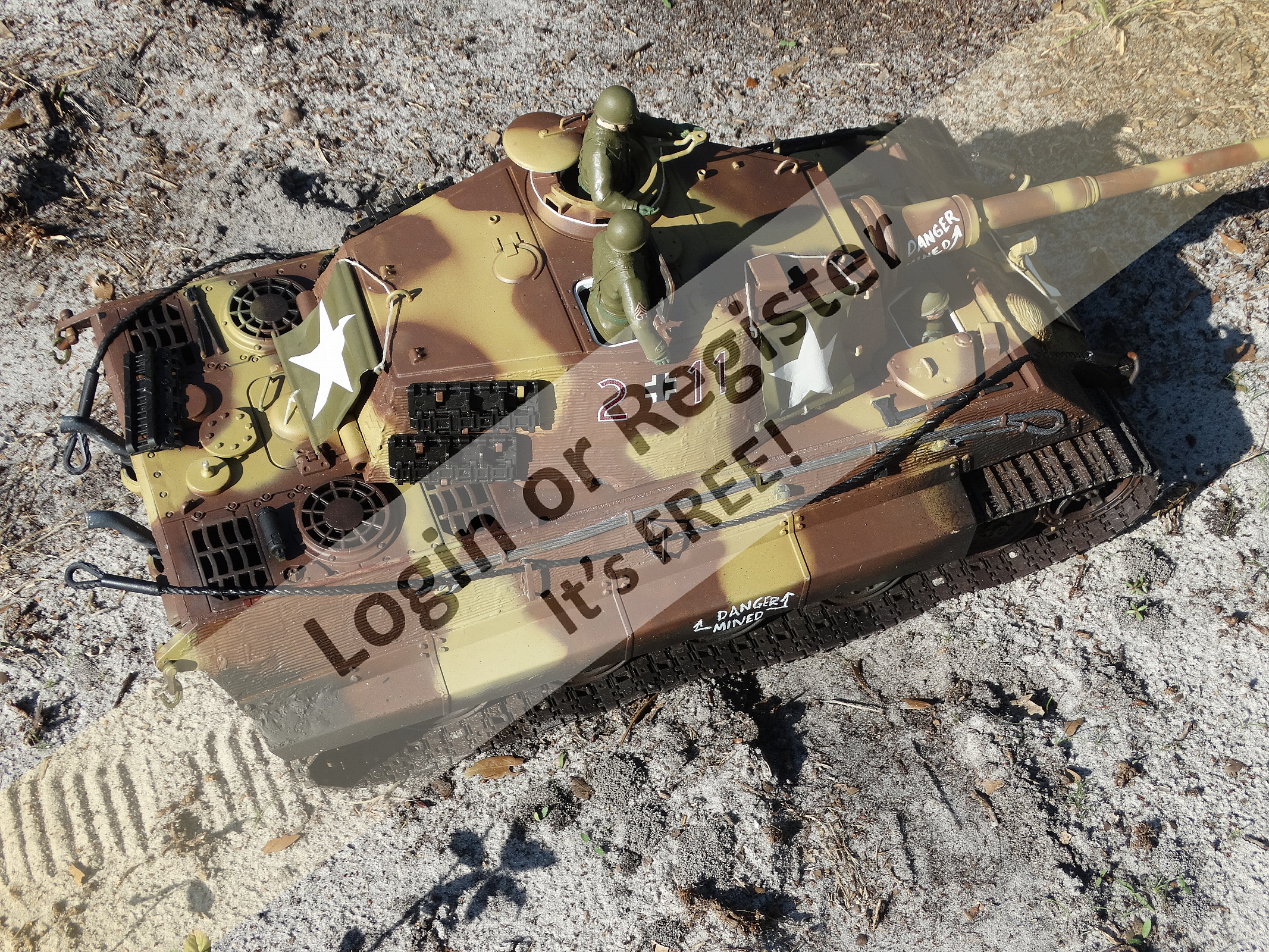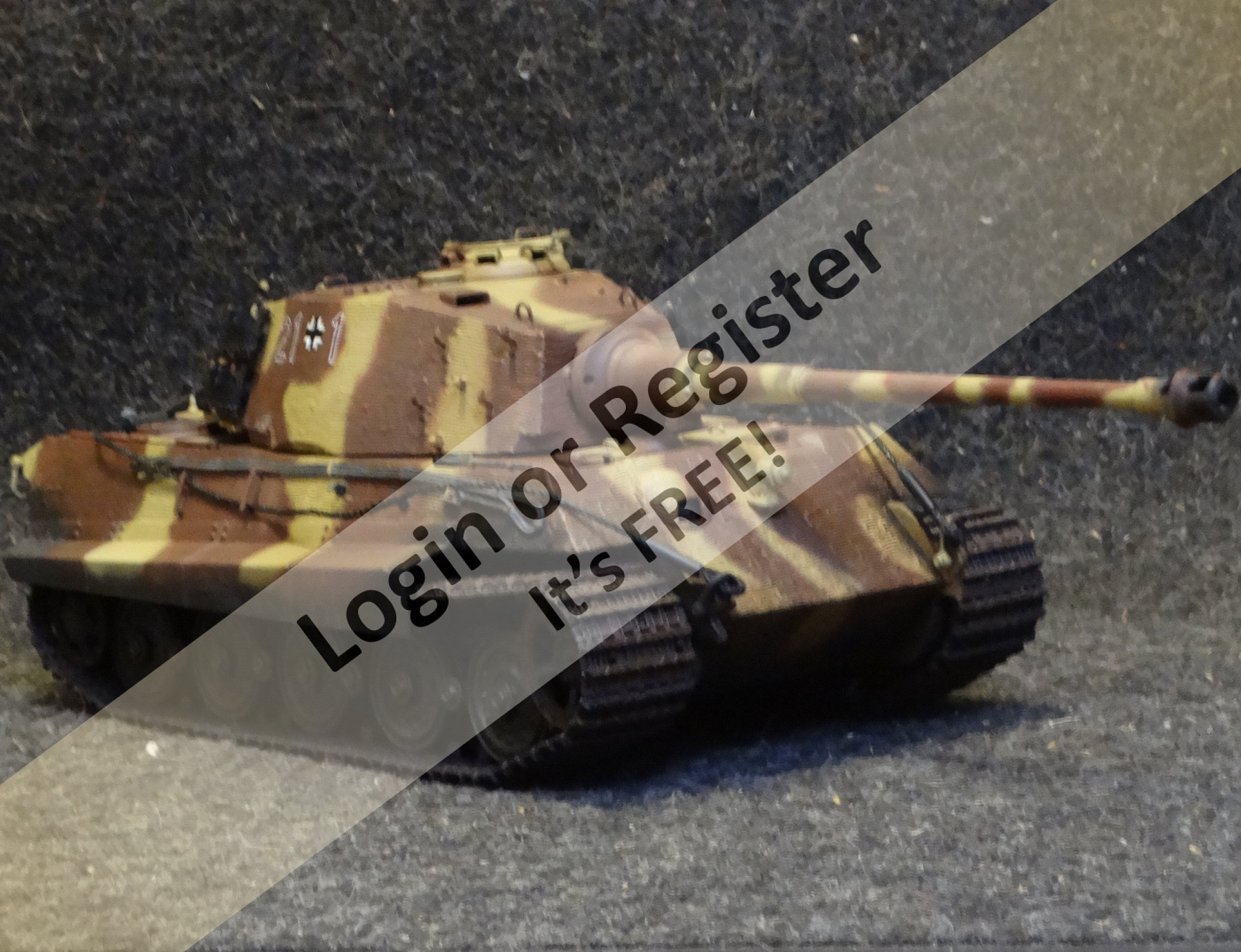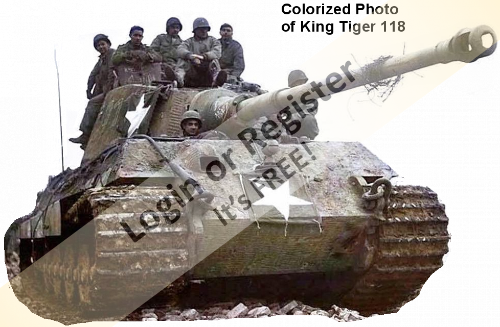 As we are on the subject of German Tigers, I have a King Tiger that replicates on captured by US troops. It was struck in the turret (also on the model), fixed to run, and covered with star flags. Lucky I found some photos and a short video of the real tank as references.