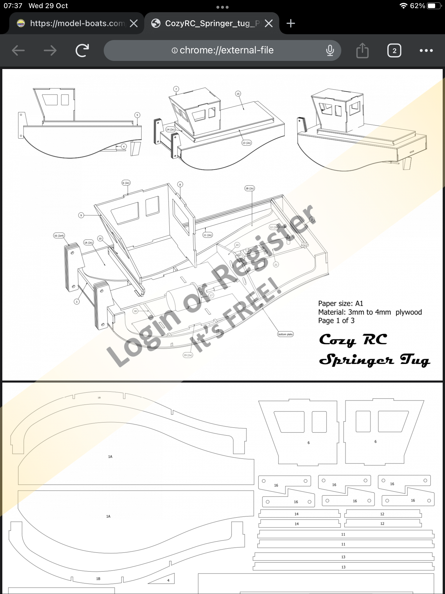 I had built a sailboat from a kit and models of the tugboats Henry Foss and Tidewater from scratch so I felt that a Springer would be no real challenge. In the following paragraphs I will describe how I built my Springer and the decisions and challenges I faced. It is truly inexpensive and reasonably easy to build but there are some interesting considerations that I