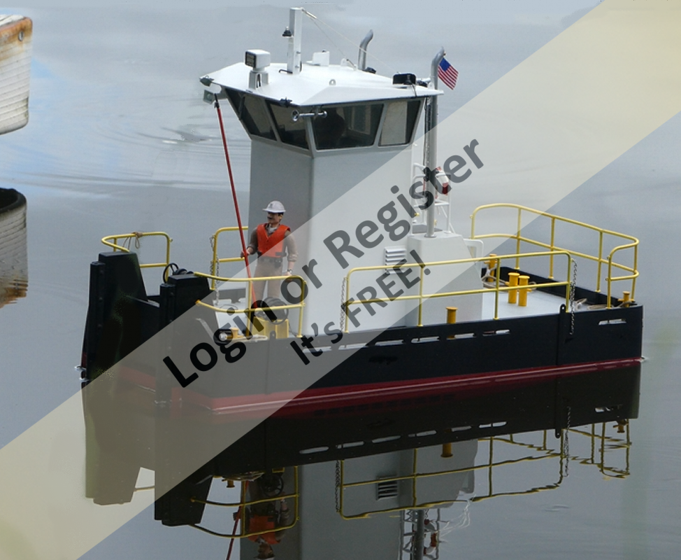Peejay, no barge for this one as it (real one) is a "stoplog" boat that operates at the Little Goose Dam on the Snake River out in Washington State (US). It is used to prevent logs and debris from entering the lock an intakes for the hydro-electric generators. The real one is owned by the US Army Corps of Engineers.