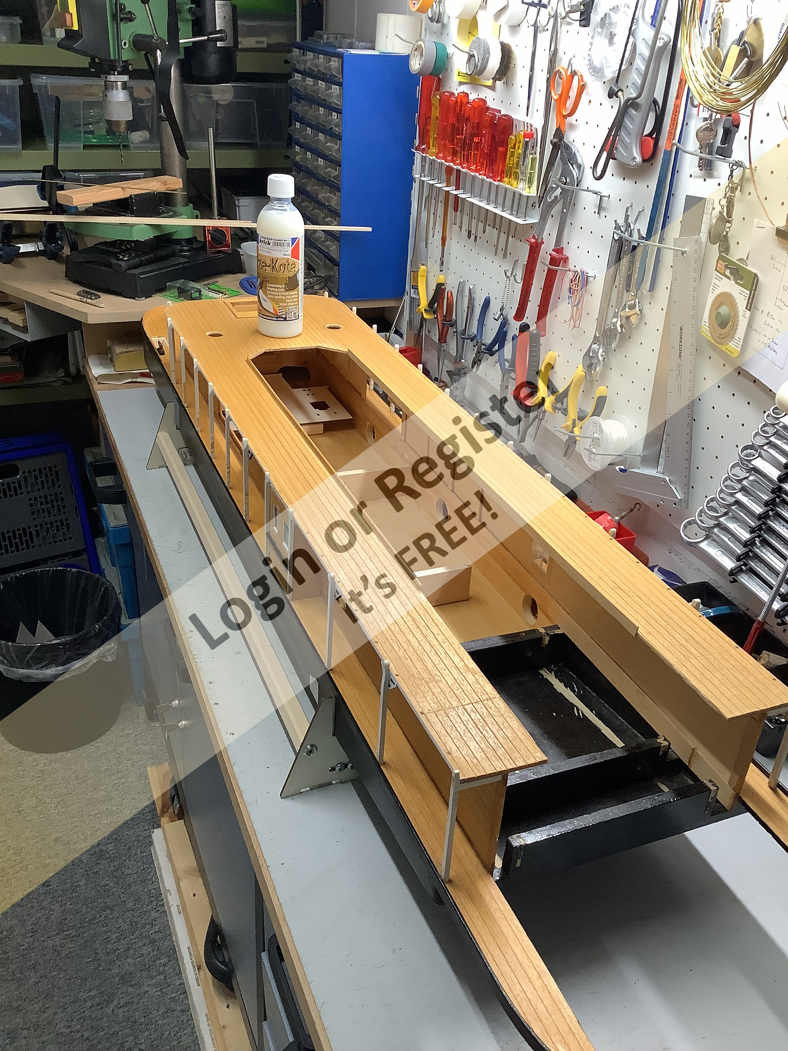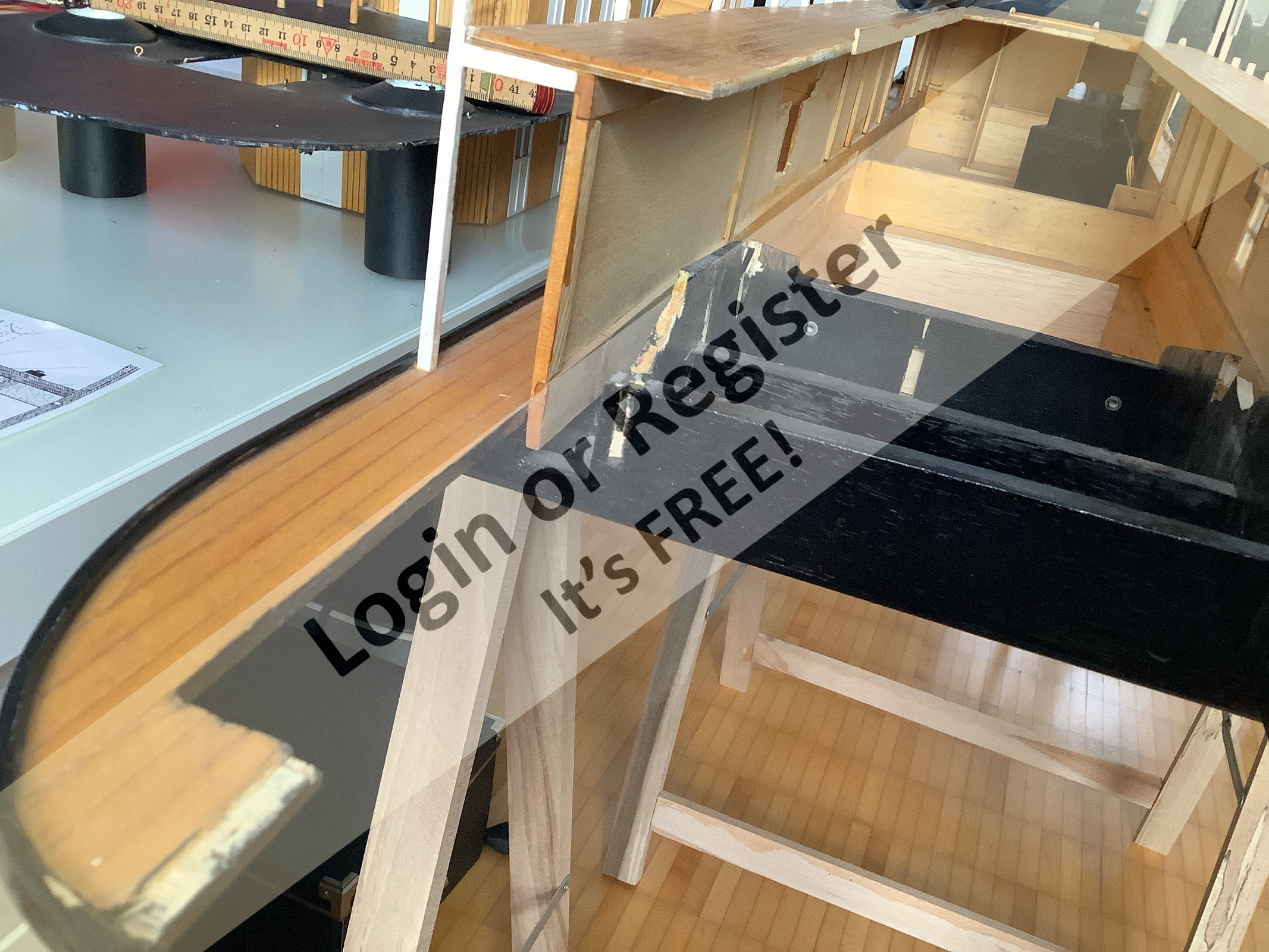 Alessandro, unfortunately I have to put you off for a moment. I have to devote all my time to the hull, as it has a few weak points that I need to repair first. Otherwise it would sink at the first water baptism. As already mentioned, the predecessor actually wanted to finish an exhibition piece, but then he decided to remodel it as an RC model. So I discovered small cracks everywhere. Somehow I'm a bit of a perfectionist, which in Swiss German is called "Tรผpflischisser". ! I'd rather let a few attempts at wood disappear into my fireplace than cause a bunch of problems. Hence my many changes as you can see here. I'll get back to you later . . . Michel-C. Ps: The top also has small imperfections. . But this will stay up there, unless I have to wait for the hull to dry. Then it could be . . ๐๐๐ ▲