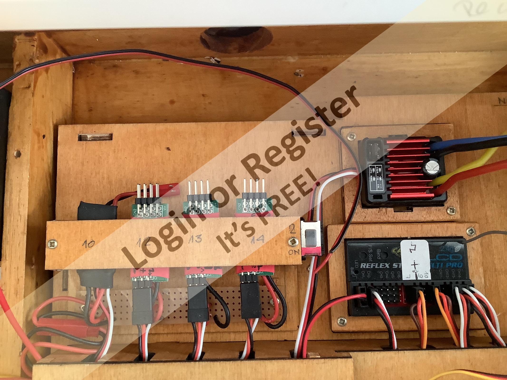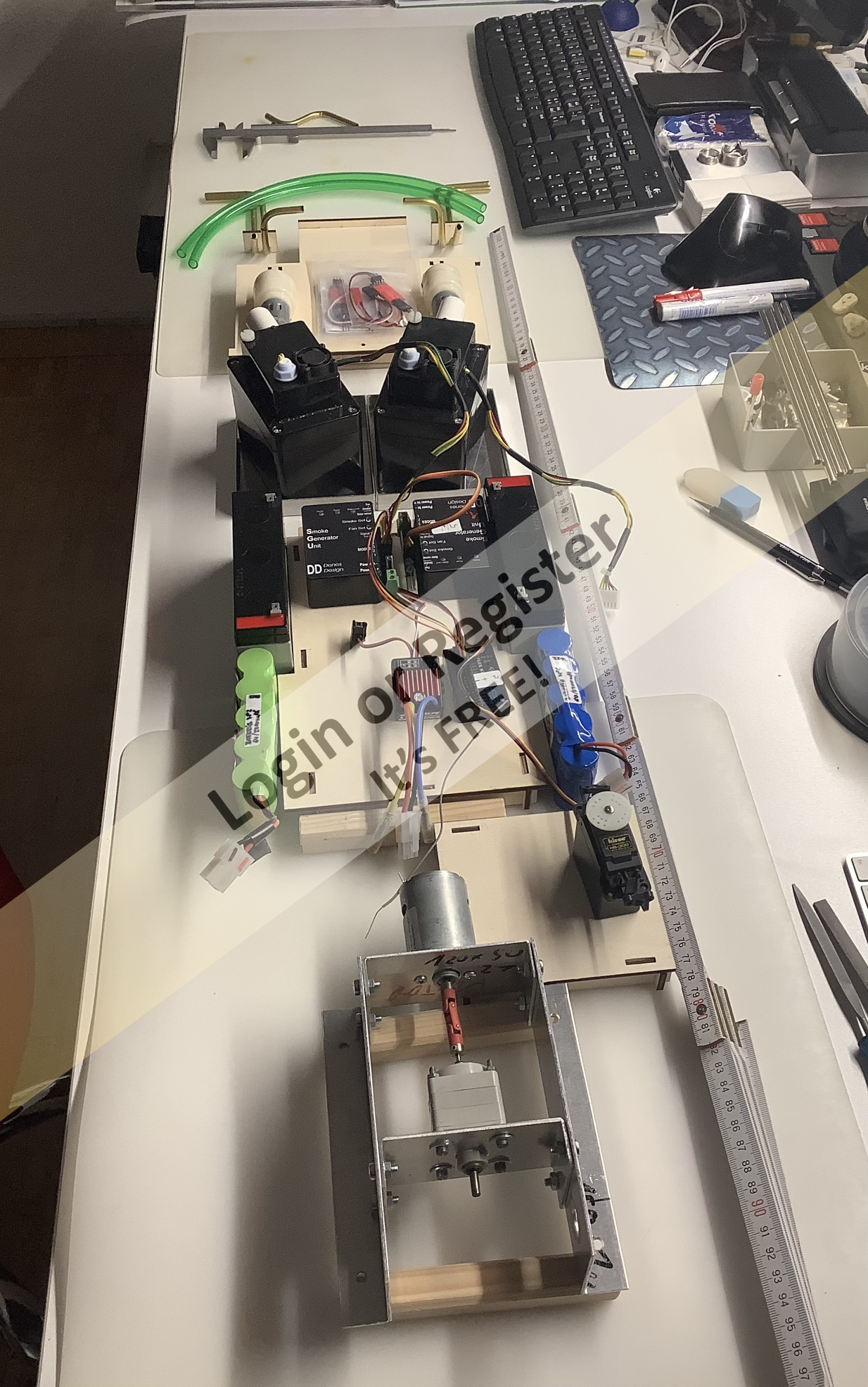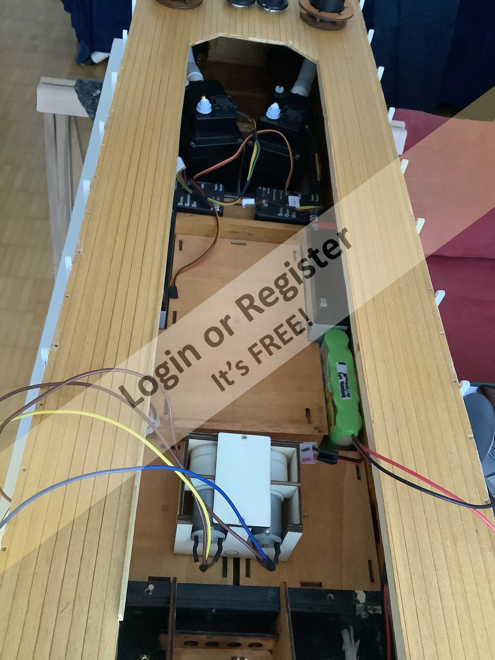 You do everything yourself, you only buy the electrical elements. Excellent. When you complete all the wiring (batteries, motor, servos, smoke generators, receiver etc. etc.) can you take more photos please? ▲