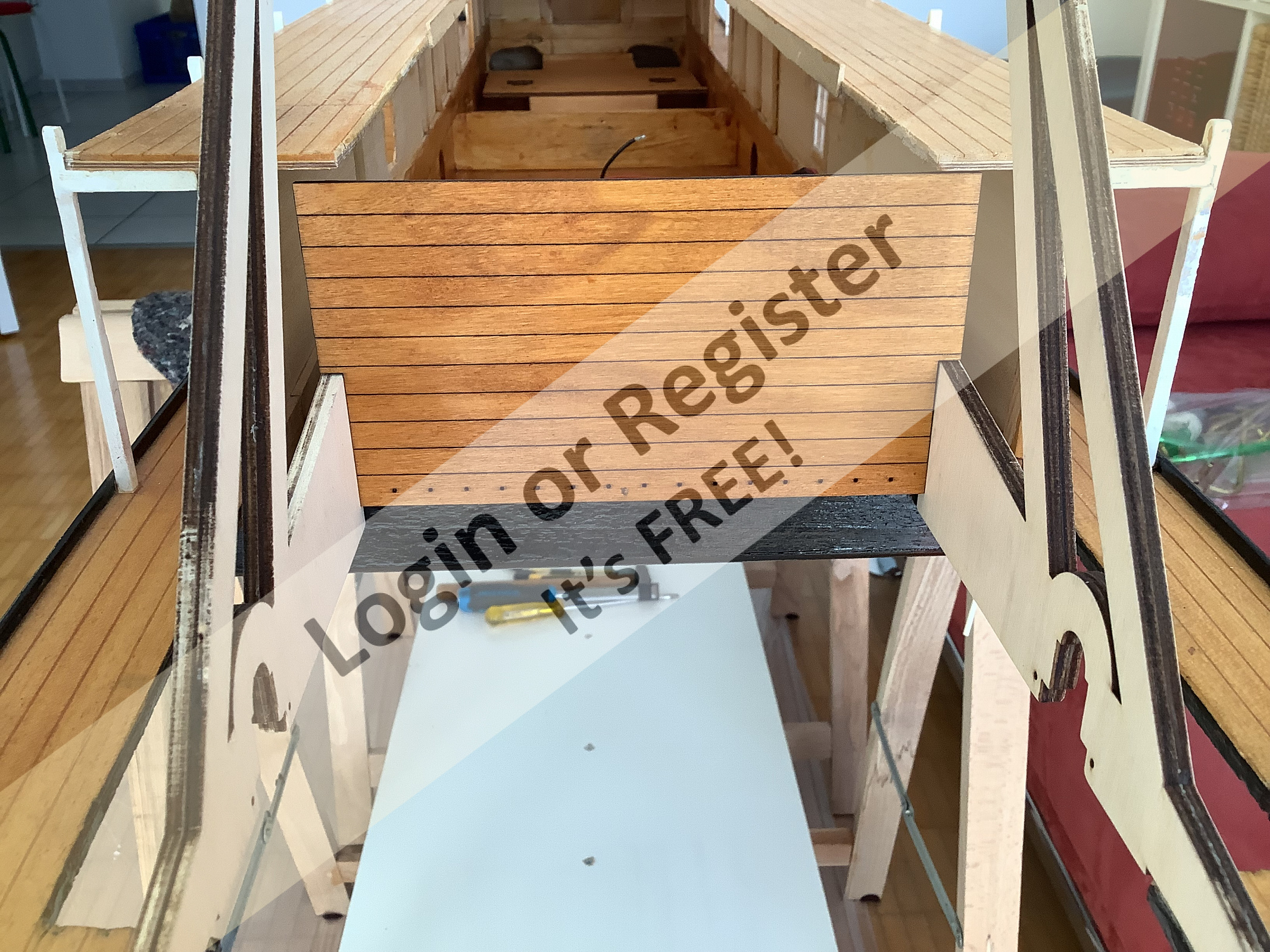 Unfortunately, after making some improvements, I had to redo the whole interior design. I'm only making slow progress, as we also like to be on the road. Here is the new interior design. . Still some parts to laser, then it should work. Greetings from a landlubber Michel-Cl ▲
