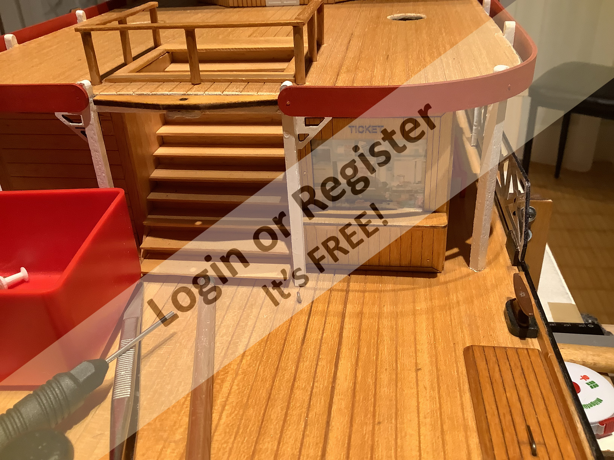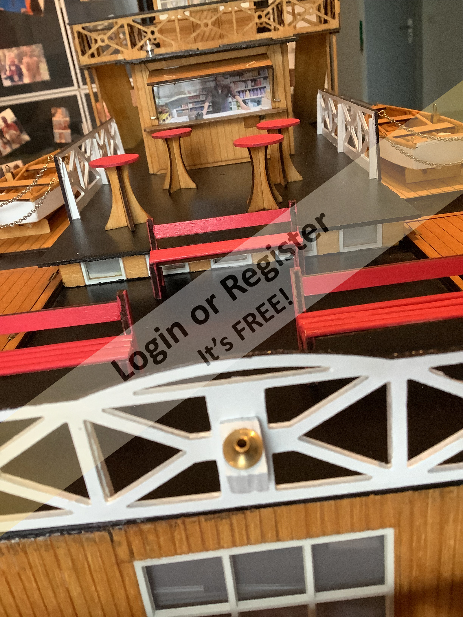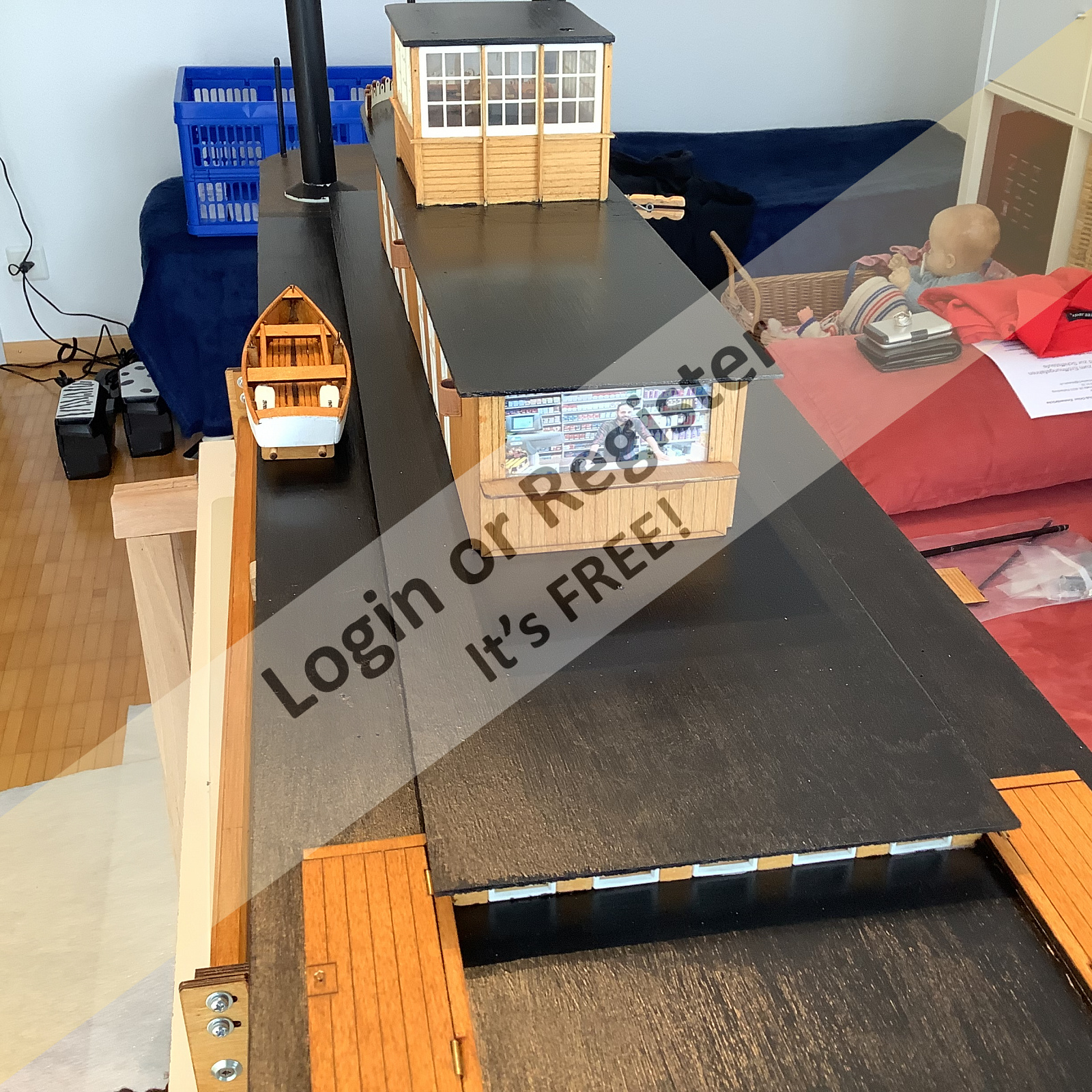 I've really come a long way, just a few more details that I can do in this weather. It's raining at impossible times here too! Our kiosk operator is waiting impatiently for the first guests. ๐ฅฐ๐ฅฐ๐ฅฐ ๐ Wait for better weather, then you can watch on the video my wife is shooting . . Tonight the electronics test, then it's time to get serious! I'm already as excited as a boy on his first day at school! Cool greetings Michel-C. @ Alessandro Let us surprise you soon regarding lifeboats ▲