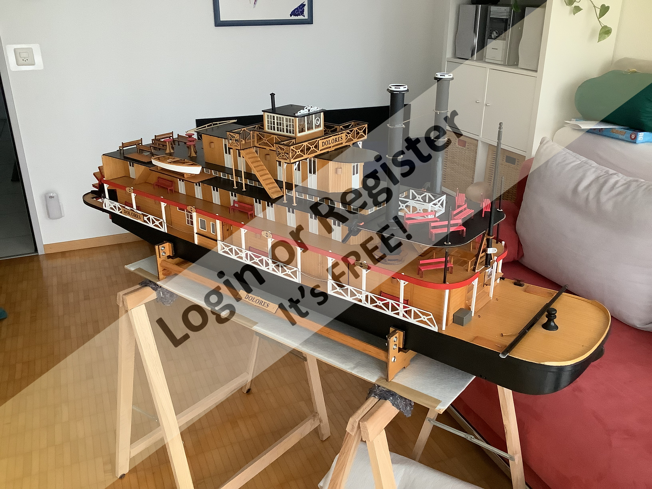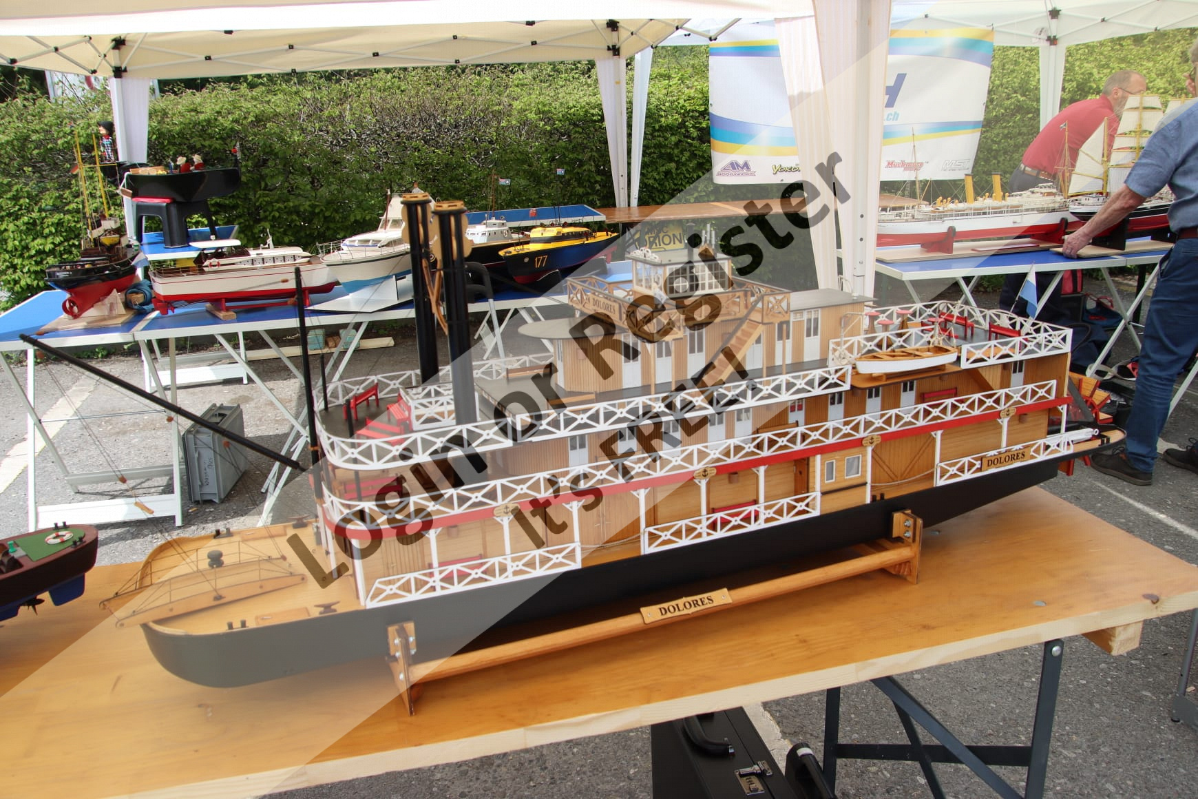 The baptism took place Sunday, my Dolores was baptized and passed several tests beforehand. now she is ready for the water! Yeah! My wife is my assistant, four hands are better! See for yourself. But don't think everything is ok ... According to the plans, the rudder is much too small in my opinion. I still have to think about it, but otherwise the additional side pumps help me when turning. Now I realize that these steamers were difficult to steer, considering that around 570 boats sank in collisions, over 160 burned, even worse over 200 exploded!!! If I had known this, I would not have taken up this offer from back then. everyone has a bird in their own way, I just have two of them!!! ๐คฃ๐คฃ๐คฃ๐คฃ๐คฃ๐คฃ๐คฃ๐คฃ Your Michel-C. ▲