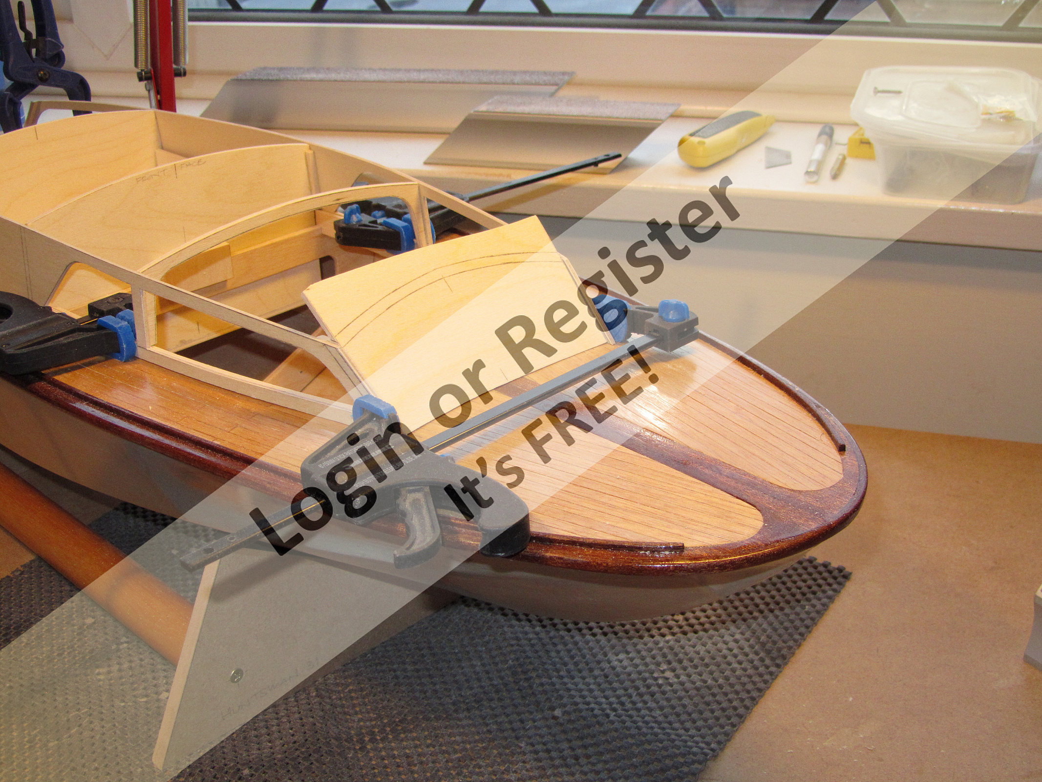 I popped home today to pick up some mail and things and took the opportunity to spent a couple of hours out in my workshop (shed). The frame of one of the two Huntsman 31 hulls now has the wooden internal parts bonded into it - I should have probably fitted the prop shaft and rudder etc first, but I can't find any plans or instructions at the moment ....and it was nice to play with some wood again! When I am home next, I will do some more work on this hull as I am keen to get to the superstructure stage and take a look at any pictures I can find that shows the front cabin so I can make a windscreen shape that looks closer to the original....and if I think it looks OK I will cut it out and see what changes will be needed to make the cabin roof fit it. Bob. ▲