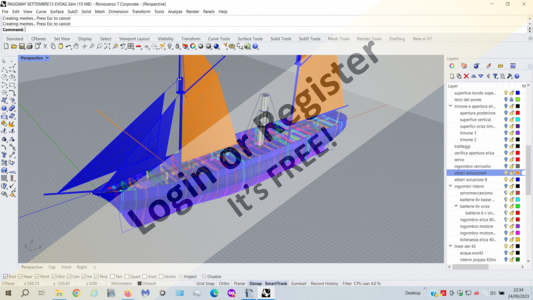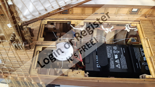 It is also possible to place one or more batteries above the AGM batteries or in the other free compartment forward. In this case the overall weight will increase slightly and the lateral righting thrust will decrease (as the ship's center of gravity will rise) but still in completely acceptable terms.